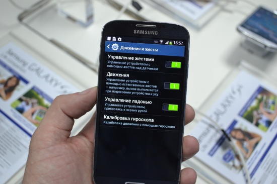 Наиболее любопытным мне показались функции управления жестами и движениями. Типичный пример – ваш S4 пребывает в спящем режиме, но стоит только провести ладонью над «спящим» телефоном и, как ни странно, но этого окажется вполне достаточно для того, чтобы S4 проснулся. Обратило на себя внимание и то, что точно также пользователь может перелистывать страницы браузера, изображения в галерее и прочее – взмахом руки, но без прикосновения. Поверьте – выглядит потрясающе.