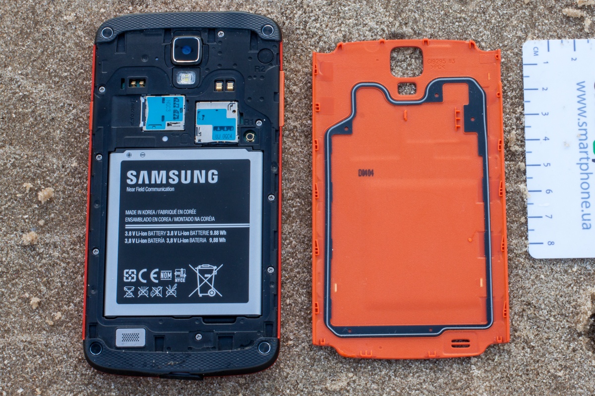 Обзор смартфона Samsung Galaxy S4 ActiveПоследняя модификация знаменитого флагмана компании Samsung, модели S4. Защищенный по стандарту IP67 аппарат с отличной производительностью, достаточно «сочным» дисплеем и рядом других любопытных «примочек». Что ж, давайте знакомиться с ним ближе. Материалы и качество сборкиВ корпусе доминирует пластик. Из него сделан и сам каркас, и крышка аккумуляторного блока, которая прикрывает тыльную панель фактически от торца до торца, и, конечно же, боковые грани. Передняя же панель «от краешка до краешка» прикрыта стеклом Gorila Glass второго поколения. Качество сборки на высоком уровне, и это несмотря на то, что знакомился я с трубкой, имея на руках инженерную версию модели. Тем не менее, очень хорошая подгонка всех элементов и «крошечные» швы/зазоры в итоге. Что понравилось лично мне и на что не могу не обратить внимания – предельная простота снятия крышки аккумуляторного блока. Все что необходимо – лишь поддеть ее за специальный зазор на правой боковой грани. В руке смартфон сидит неплохо. Вес в 151 грамм фактически незаметен и на длительной непрерывной работе не сказывается никак. ДизайнЕще на SAMSUNG PREMIERE 2013 в Киеве представители этого южнокорейского производителя анонсировали, что на рынок Active выйдет не в одном варианте расцветки корпуса, а как минимум в трех, о чем, собственно, свидетельствует иллюстрация далее. Стиль, в котором выполнен Active, можно назвать в меру агрессивным, а причина кроется в простых вещах – мелкой, в отличие от других «внедорожников» Samsung, текстуре на тыльной панели, жестким ребрам плюс достаточно небольшой толщине корпуса. Проработка выглядит продуманной – легко прослеживаются общие черты линейки, да и сама задумка на практике реализована весьма неплохо. Эргономика функциональных элементовВ плане эргономики первое, что понравилось – три механические кнопки под дисплеем. Они дополняют общую агрессивность трубки. Само собой без дисплея не обошлось – 5-дюймов с тонкими окантовками по вертикали. Если быть предельно честным, глядя на дисплей, на первый взгляд и не скажешь, что здесь столько дюймов – выглядит определенно меньше. Чуть выше дисплея имеется прорезь разговорного динамика, а также датчики освещенности и приближения, глазок фронтальной камеры плюс индикатор событий. В теле тыльной панели прорезь динамика громкой связи, вспышка и глазок основной 8 Мп камеры. На правой боковой грани находится кнопка включения/выключения питания аппарата плюс уже упомянутый зазор для того, чтобы пользователь смог снять крышку аккумуляторного блока. С противоположного торца пользователь получает доступ к спаренной кнопке регулировки громкости звука. На верхнем торце расположен классический разъем 3,5 мм, а также окошко инфракрасного порта. И, наконец, на нижней грани обустроен порт micro-USB и миниатюрная прорезь встроенного микрофона. Краткие технические спецификации