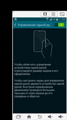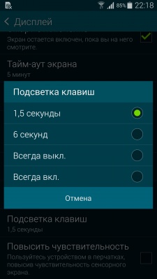 В настройках пользователь может выбрать «Режим экрана» - один из нескольких вариантов отображения со своими установками, активировать либо отключить режим «Смарт-отключение», а еще кликнуть на подменю «Повысить чувствительность». Активация последнего позволит работать в перчатках.