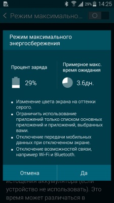 Не обошлось и без своего подпункта «Энергосбережение». В сущности, здесь пользователя ждут две настройки «Энергосбережение» и «Режим максимального энергосбережения». В первой речь идет о блокировке фоновых данных, а также ограничении производительности отдельных приложений и элементов. А вот вторая делает экран черно-белым и отключает все лишние беспроводные модули и программы с целью максимальной экономии энергии.