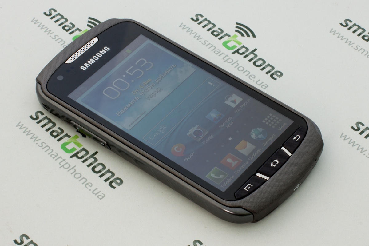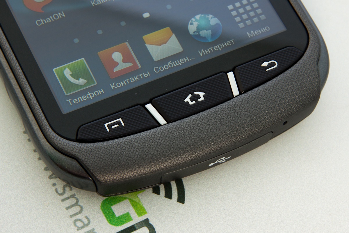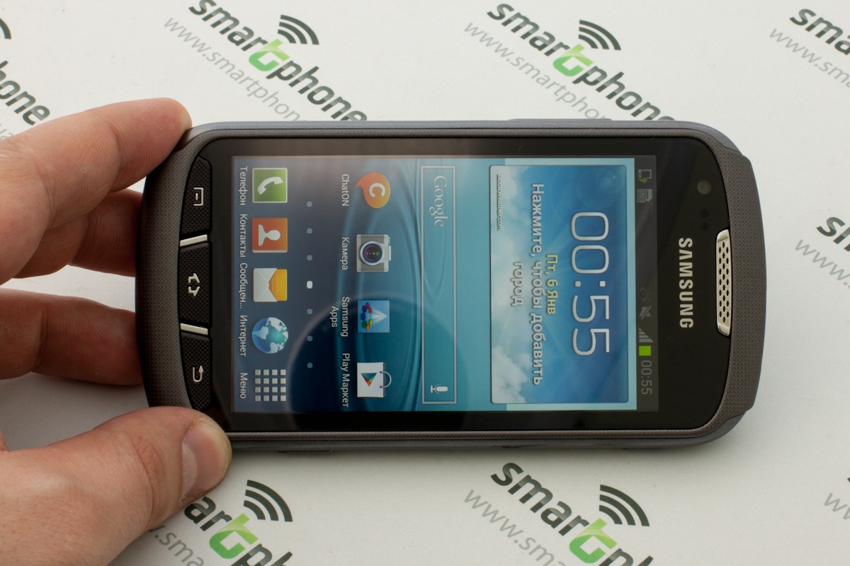 Обзор смартфона Samsung Galaxy Xcover 2 (GT-S7710)Второе поколение смартфонов Xcover - это защита по стандарту IP67, Android 4.1.2 «из коробки», агрессивный дизайн, 2-ядерный процессор и гигабайт оперативной памяти. Лень читать текстовый обзор? Смотрите подробный видео-обзор...Материалы корпуса и сборкаВ основе корпуса прочный матовый пластик. На всех торцах и панелях имеется текстура и ребристость. При помощи этой, с позволения говоря, атрибутики производитель создал трубке довольно агрессивную внешность. Взяв Xcover 2 в руки, понимаешь, с каким устройством имеешь дело. Без металла, конечно же, также не обошлось, но в корпусе конкретно этого смартфона металлических элементов немного – только несколько вставок, а также окантовок. Отмечу, на тестировании у нас пребывала, хотя и хорошо сложенная, но все-таки инженерная версия устройства. Исходя из этого, дальше по тексту будут оговорки по той или иной особенности смартфона. Сами по себе материалы превосходные. Никакой деформации, треска, скрипа или других примеров халатности производителя даже при очень сильном сжатии корпуса заметно не было. Подгонка их между собой также претензий не вызывает, за исключением лишь нижнего торца – здесь заметен зазор. Очевидно, он и стал «камнем преткновения» во время «купания» трубки. Но об этом ниже. В руке смартфон сидит замечательно. Никакого ощущения скольжения вследствие длительного непрерывного пользования смартфоном. Что приятно – даже материал, прикрывающий дисплей, сильно не марается. Эргономика функциональных элементов на боковых гранях вполне удобная, привыкнуть сможет даже левша. Фиксация крышки аккумуляторного блока быстрая, происходит при помощи металлического винта на тыльной панели. О степени надежности такой конструкции говорить рано, все же ощутимый шов на нижнем торце свои коррективы в конструкцию вносит. ДизайнSamsung Galaxy Xcover 2 (GT-S7710) – трубка, которая идеально подойдет брутальным парням. Аппарат не рассчитан на бережливое отношение к нему, собственно этим он интересен прежде всего. В руке смотрится мощно и очень надежно. Очень понравилась текстура на панелях и торцах. Простой, казалось бы штрих, но эффект массивности, мощи, надежности, вне сомнения, достигнут. Эргономика функциональных элементовКак и Xcover первого поколения, рассматриваемое в этом обзоре устройство получило аппаратные кнопки. Предназначение их традиционное, понять это легко, взглянув на сноски. При помощи этих кнопок смартфон можно и разблокировать. Далее4-дюймовый дисплей, прорезь коммуникационного динамика, изнутри подпертая металлической сеткой, а также глазок фронтальной камеры. С датчиком освещенности все плохо – его нет, так что автоматической регулировки подсветки не предусмотрено. В теле тыльной панели глазок основной 5Мп камеры со вспышкой, а также вывод динамика громкой связи и уже упомянутый металлический винт. Кроме того, примерно по центру расположен логотип SAMSUNG. На правой боковой грани пользователь обнаружит кнопку включения/выключения питания аппарата, а также клавишу быстрого запуска камеры. За последнее скажу спасибо – частенько производители «грешат» отсутствием этого маленького, но очень необходимого функционального элемента. С левой боковой грани открывается доступ к спаренной кнопке регулирования громкости звука, а также петле крепления страховочно