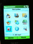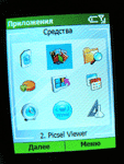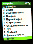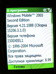 По бокам телефона расположено достаточно клавиш, чтобы можно было заявить, что Samsung i300 – один из первых смартфонов, которые так используют боковые кнопки и органы управления. На правом боку – слот для карт памяти формата TransFlash (интересно, для чего они при трёхгигабайтном диске?), кнопка для фото, кнопка для блокировки клавиатуры и клавиша выбора режимов аппарата, а также его выключения: подержав её больше, чем надо, i300 может спокойно перейти в режим «В самолёте» и не подавать никаких признаков телефонной жизни. Слева нам доступны кнопки быстрого вызова голосовой записи, разъём для наушников, клавиша музыкального стандартного Windows-плеера и неудобные (потому что в самом низу корпуса) кнопки регулировки громкости. Честно сказать – иногда эти все боковые кнопки нажимаются в самый неподходящий момент, и поэтому немного раздражает их доступность и маленькая сила нажатий. Сверху и снизу – ничего интересного: инфракрасный порт, интерфейс для зарядки и соединения с компьютером. Давайте прогуляемся по мобильному Windows. Мы можем увидеть ту же кнопку «Пуск», почти такой же интерфейс, как у системы ХР, почти те же самые эффекты – как звуковые, так и визуальные при перемещении по меню, а также кучу всяких пунктов и подпунктов, которые смело можно было бы сократить раза в три. Для того, чтобы настроить аппарат под себя и откалибровать некоторые функции, понадобится достаточно времени: все нужные параметры, хоть и собраны в одном месте, всё же настолько обширны и глубоки по строению меню, что приходится внимательно смотреть, где ты находишься, и сопоставлять действия с местоположением. Для того, чтобы добраться до какой-то функции, приходится прокручивать меню несколько раз, пока точно попадёшь колесом на нужный тебе параметр. К тому же, некоторые настройки и включения функций не лежат на самой поверхности, а спрятаны где-то глубоко. Помочь может лишь переключение меню из стиля Windows на обычный «телефонный» - нажмите и держите кнопку с домиком.