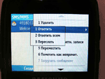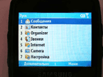 Несмотря на широкий корпус, количество кнопок и их размеры несколько не соответствуют принципам эргономики и удобства, поэтому клавиатура на наш взгляд показалась нам не слишком удобной даже для набора текста. Кнопки небольшие, немного вытянутые по вертикали, между ними расстояние маловато, и нажимать их надо ещё приноровиться – краем или боком пальца, а вот ногтём давить на них совсем неудобно. Конечно, для набора лучше всего держать аппарат двумя руками, как это и задумано исходя из ширины корпуса, но всё же комфорта мало именно из-за небольших кнопок. Усугубляет положение их профиль – если бы клавиши были без граней, но плоскими и хорошо прощупываемыми, то набор был бы удобней. Особенно интересна кнопка справа в самом низу – это быстрый вход в меню сообщений. Такое впечатление, как будто осталась одна клавиша, на которую уже ничего не «навесишь» - и на неё назначили сообщения, которые обычно назначают на одно из направлений джойстика или контекстную клавишу. В общем, цифровая и символьная клавиатура – это чуть ли не единственное слабое место в i320.