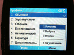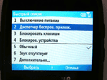 По бокам аппарата также есть управление, и эти кнопки достаточно функциональны и полезны. На левой стороне – регулировка громкости звонка и динамика при разговоре, а вот справа – кнопок побольше. Одна блокирует аппарат и позволяет выбирать профили и режим, когда выключена телефонная часть и работает только смартфон или Bluetooth. Другая – быстрый доступ в одну из запрограммированных возможностей, на неё можно "навесить" что угодно. Различаются короткое и длительное нажатие, а меню выбора этой функции, как и скриншот с диспетчером профилей, есть на фото чуть пониже. Там же, на правой стороне – интерфейс для подключения гарнитуры и по совместительству кабеля с зарядным устройством. Кнопки хорошо выпуклые, нажимаются не очень легко, но и не жёстко (это, кстати, относится ко всем клавишам, и если боковые кнопки подходят для такого усилия при нажатии, то цифровые слишком жестки из-за небольших размеров). Кстати, на одной из кнопок находится небольшое красное окошко, которое навевает на мысль об инфракрасном порте, однако его в телефоне нет.