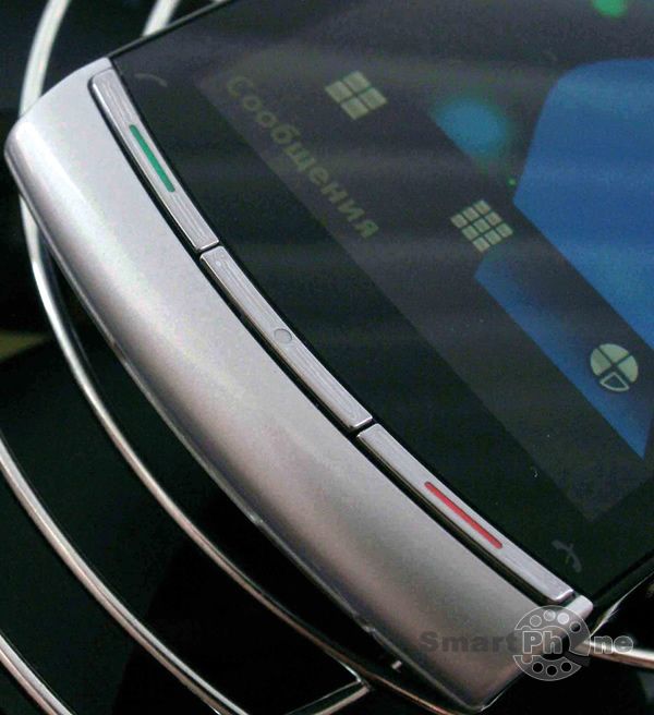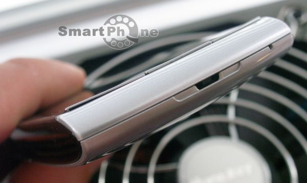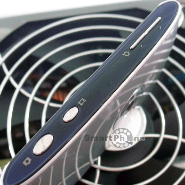 На боковых торцах Vivaz U5 – несколько функциональных клавиш. На правой боковой грани находится спаренная кнопка регулирования громкости звука. Эта кнопка во время активации работы встроенной камеры выполняет также роль кнопки зума. Здесь же расположены кнопки активации встроенной камеры в режиме «фото» или «видео». Ход обеих кнопок вполне удовлетворительный.