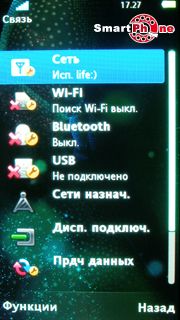 Менеджеры sms и mms находятся, традиционно, в подразделе или подпункте меню «Сообщения». Приложение Google, а также менеджер синхронизации с контактами, календарем и пр. расположены в подпункте меню «Органайзер». В меню «Параметры» в подразделе «Связь» находятся беспроводные модули обмена информацией Wi-Fi и Bluetooth, а также раздел, отвечающий за синхронизацию по USB.