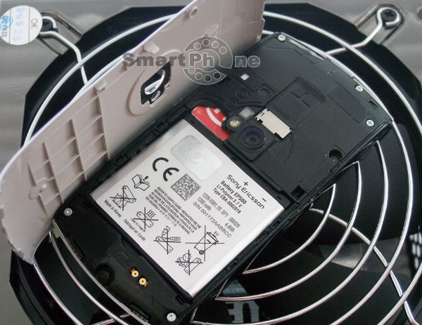 На тело корпуса крышка крепится очень легко. Но вот снять ее уже не так просто, как одеть. Для снятия ее с петель корпуса предусмотрен специальный зазор на нижнем торце, нажатие на который дает ход нижней части крышки, позволяя снять эту деталь полностью. Крышка во время снятия сильно сгибается, и возникает мысль, что ее можно легко сломать. И хотя в действительности это не так – сломать крышку во время этой процедуры нельзя (опробовано более 20-ти раз), эти ощущения не покидают пользователя даже после нескольких дней эксплуатации модели. На теле крышки присутствует массивная вставка с отверстием для глазка встроенной камеры, а также глазка вспышки и подсветки, и несколько технических данных о камере.