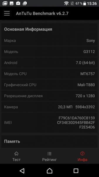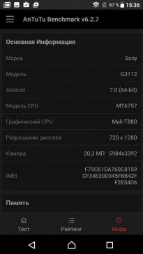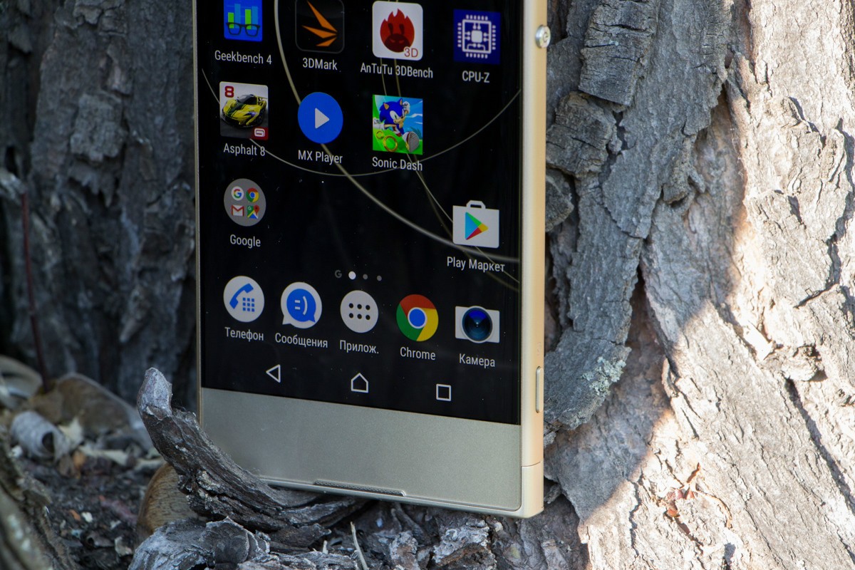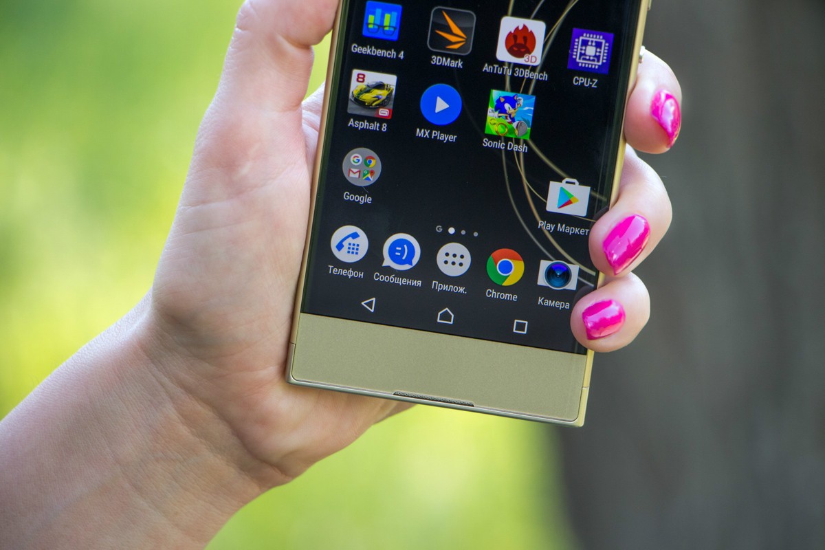 Комплект поставки Начнем с комплектации. Она с учетом стоимости в $340 у Xperia XA1 Dual небогатая: адаптер питания, кабель USB-USB Type-C и инструкция пользователя. Коробка, в которой поставляется смартфон ярким дизайном не отличается, вместе с тем, содержит всю необходимую информацию о товаре: модель, расцветка, технические характеристики. Дизайн и функциональные элементы Во время работы над новым обликом смартфона муза явно изменила дизайнерам с математиками. Поэтому на примере Xperia XA1 Dual на уроке геометрии можно запросто демонстрировать прямоугольник. Впрочем, это для трубок Sony не впервой - острые углы и четкие линии уже давно стали ключевыми элементами дизайнерской концепции Xperia. Из-за них XA1 выглядит, с одной стороны, слегка скучновато, а с другой - строго, что любители минимализма, уверена, по достоинству оценят. Чтобы угодить как можно большему числу пользователей, в корпусе модели производитель использовал и пластик, и металл. Правда, где что, на первый взгляд отличить сложно. Во-первых, все элементы тщательно окрашены в один цвет: белый, черный, розовый или золотистый. Во-вторых, оба материала используются качественные – при аккуратной эксплуатации не собирают на себе, ни отпечатков пальцев, ни царапин, плюс имеют одинаковую матовую текстуру из-за чего схожи на ощупь. Впрочем, повертев несколько минут трубку в руке, удалось выяснить, что пластиковая здесь тыльная панель и вставки на «боковушках», а из металла верхний и нижний торцы. На верхней грани обустроен 3.5 мм аудиовыход и микрофон шумоподавления, а на нижней — мультимедийный динамки и разъем USB 2.0 формата Type-C. На левой «боковушке» находится гибридный слот (2хnanoSIM/nanoSIM+microSD), а на правой качелька регулировки громкости, кнопка питания и традиционная для большинства гаджетов Sony отдельная клавиша спуска камеры. Кнопка включения/выключения, хотя и маленькая, но за счет того, что больше других выступает над поверхностью и имеет другую форму, легко нащупывается даже вслепую. Качелька громкости имеет довольно тугой ход, так что случайные нажатия исключены. В свою очередь клавиша камеры очень низко опущена из-за чего управлять ей приходится, перехватывая смартфон в руке. Замечу, что кнопки в пазах не болтаются, да и в целом собран Xperia XA1 на пять баллов из пяти. На тыльной панели по центу нанесен логотип Xperia, а сверху обустроен объектив 23Мп камеры со светодиодной вспышкой. Две симметричные прорези динамиков на фронтальной панели тестируемой модели, казалось бы, так и шепчут о том, что здесь стереозвук. Но не тут-то было - за нижней спрятан микрофон, а за верхний разговорный динамик. По соседству с ним расположен также объектив 8Мп камеры, LED-индикатор, датчики освещения и приближения. Дисплей Центральным элементом передней панели Xperia XA1 является, конечно же, 5-дюймовый дисплей. Он выполнен по IPS-технологии и отображает картинку в разрешении 1280х720 точек. Дисплей смартфона не грешит режущей глаз пикселизацией, имеет широкие углы обзора, хорошую контрастность и достаточный для работы даже в условиях яркого солнца запас яркости. Из прочих его достоинств отмечу автоматическую регулировку подсветки, возможность ручной настройки баланса белого и активации технологии улучшения изображения Sony Mobile Bravia Engine 2. Экран Xperia XA1 защищен стеклом Gorilla Glass с качественным олеофобным покрытием. Поколение не уточняетс