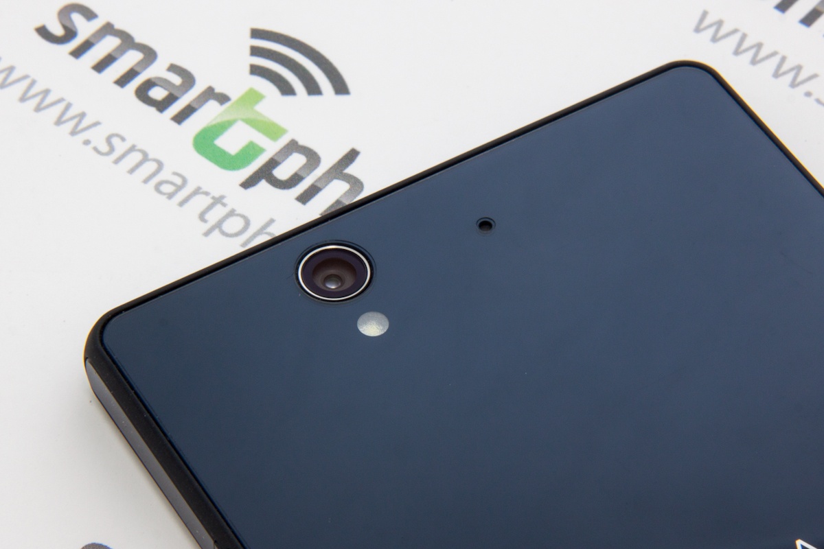 На тыльной панели по центру находится логотип Xperia, а вверху глазок 13-мегапиксельной камеры с LED-вспышкой и дополнительный микрофон для шумоподавления.