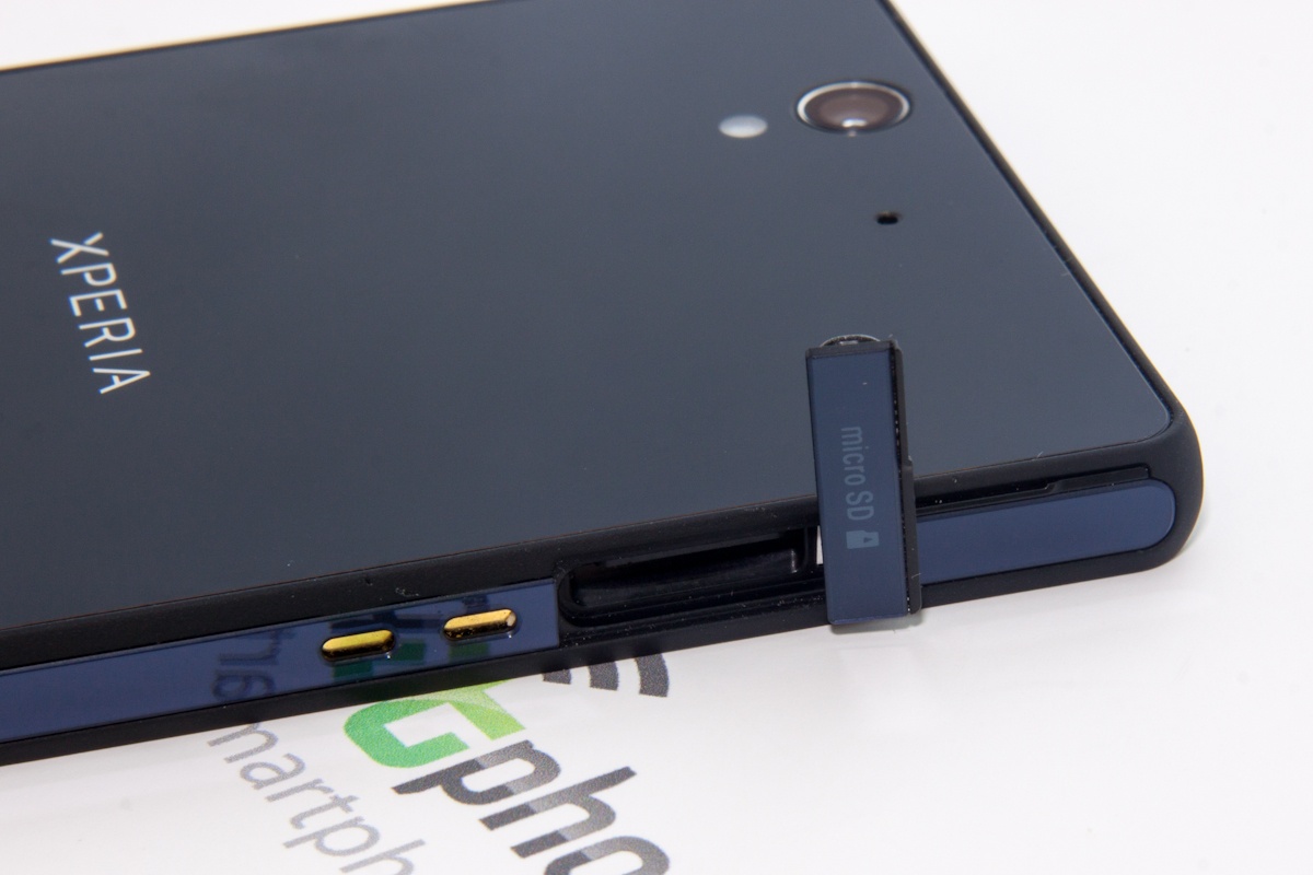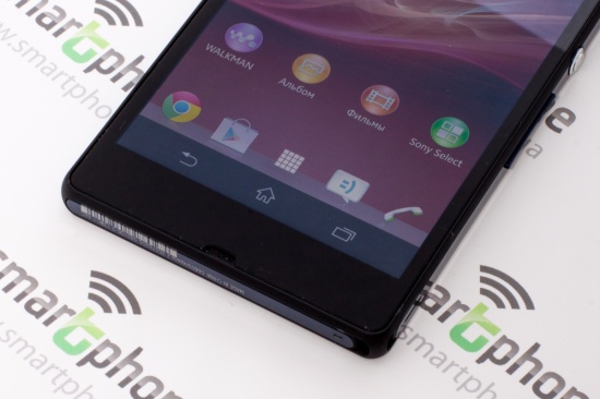 Все разъемы в Sony Xperia Z в связи з защищенным статусом устройства закрыты герметическими заглушками. На верхней боковой грани это 3,5 аудиоразъем, на левой слот для карт памяти формата MicroSD, разъем micro-USB, а на правой слот для micro-SIM карты. Чуть ниже последнего «разместились» кнопка питания, качельки регулировки громкости и динамик громкой связи.