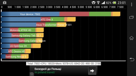 Они высокие, но до показателей главных конкурентов S4 и HTC One не дотягивают. С другой стороны, у нас проблем при работе с аппаратом не возникло – ни при одновременном запуске большого количества приложений, ни при просмотре видео в потоковом режиме или игре в современные 3D-игры, а это ведь самое главное.