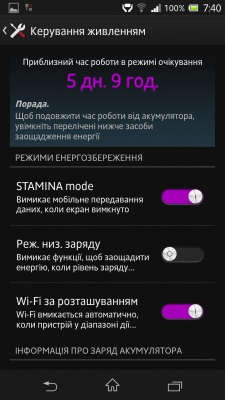 Более того, сохранить его на еще более длительные сроки можно с помощью режима STAMINA, который автоматически отключает неиспользуемые функции при выключении дисплея, оставляя при этом только нужные уведомления.