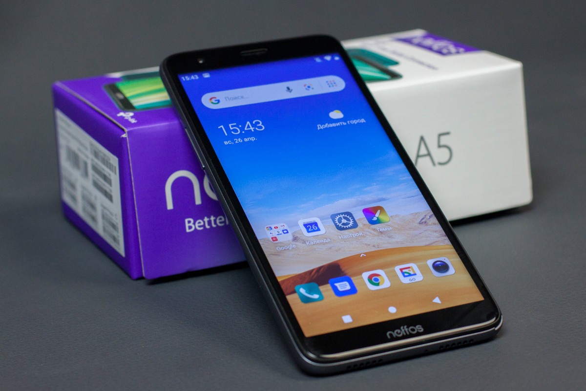 Обзор смартфона TP-Link Neffos A5: большой экран в ультрабюджетном сегментеTP-Link Neffos A5 – смартфон по очень доступной цене. Все "за" и "против" этого недорогого телефона на Android 9 Go edition с 5,99-дюймовым HD+ экраном и аккумулятором на 3050 мАч узнаете из обзора. Дизайн и корпус Внешность Neffos A5 сдержанная и строгая. Ее производитель уже предлагал на обозреваемых мной моделях C7 Lite, С9, С5 Plus и других. И снова на тесте у меня серый цвет. Тыльная панель съемная, немного скруглена к торцам и изготовлена из матового пластика для лучшего сцепления с рукой пользователя. Отпечатков пальцев на ней вообще не видно, что очень практично. Кнопка питания на правой боковушке, качелька регулировки громкости – слева. На верхнем торце выводы под 3.5 мм аудиовыход и порт microUSB, а снизу микрофон и динамик. Запас громкости мультимедийного динамика средний. На максимуме он не хрипит. На средней громкости звучит сбалансированно. Большая часть передней панели смартфона отдана под 5.99-дюймовый экран. Над ним прорезь разговорного динамика, объектив 2 Мпикс. камеры, датчик приближения и LED индикатор. Разговорный динамик качественный, с достаточным запасом громкости. Габариты, с учетом большого дисплея, требуют сноровки для управления телефоном одной рукой. Размеры 162,8х78х9,75 мм при весе 188 грамм. Сборка без нареканий. Дисплей TP-Link Neffos A5 идеально подходит для чтения книг, новостей в сети интернет и просмотра видео. Все это заслуга 5,99 дюймового экрана. В основе IPS-матрица хорошего качества, которая остается читаемой даже в условиях яркого солнечного света. Углы обзора достаточные, олеофобное покрытие не идеальное, чтобы вытереть экран нужно постараться. Защитные качества материала, прикрывающего дисплей, производитель не уточняет. Но за время теста, не сильно бережливо относясь к телефону, царапин не насобирал. Чехла в комплекте поставки нет, только защитная пленка. Ее клеите на свое усмотрение. Разрешение – 1440 x 720 точек, плотность пикселей на дюйм– 269. Пикселизация заметна, но не критична. Уровень подсветки экрана можно настраивать только вручную. Сенсорный слой распознает до 2 одновременных касаний. Исходя из стоимости смартфона, претензий к его дисплею нет. Аппаратная начинка За все вычисления и слаженную работу основных компонентов отвечает 4-ядерный процессор Spreadtrum SC7731E с тактовой частотой 1.3 ГГц, графический чип Mali T-820 MP1 533 МГц и 1 ГБ оперативной памяти. Скромные характеристики, так что рассчитывать на быстрый запуск тяжелых динамичный 3D аркад не нужно. Танки на минималках идут, только по времени долго загружаются. Простенькие аркады и логические игры запускаются без нюансов. В повседневном использовании платформа обеспечивает плавное воспроизведение HD-видео, стабильную работу гаджета в режиме многозадачности и плавное функционирование интерфейса. Только рекомендую держать минимум запущенных приложений одновременно. Программно внутри Neffos A5 Android 9 Go edition. Лишних приложений от производителя нет. Интерфейс отзывчивый, не тормозит, но и не «реакивный». Под съемной задней крышкой два отдельных слота для SIM карт формата nano, которые одновременно работают лишь в режиме ожидания. Из всех доступных на сегодняшний день стандартов связи они поддерживают 3G WCDMA / 2G GSM. Но это не мешает смотреть видео даже за пределами домашней Wi-Fi сети. По ссылке тест Neffos A5 в 3G сети оператора life:). В смартфоне и