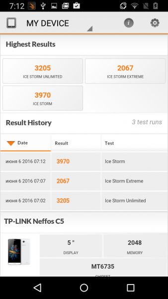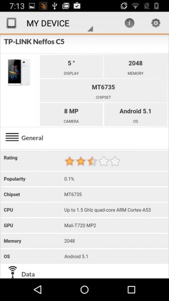 Обзор смартфона TP-LINK Neffos С5 (TP701A)Второй из «трио» первых смартфонов компании TP-LINK - Neffos С5. По сути, является старшим братом модели Neffos C5L с таким же дизайном, однако мощнее «железом», качественнее и больше экраном, емче батареей и продвинутее камерами. О всех этих и других преимуществах С5 над младшей моделью далее в нашем обзоре. КомплектацияNeffos С5 упакован в коробку, идентичную модели C5L, а разница в комплекте их поставки сводится всего лишь к одной позиции. В комплектацию Neffos С5 помимо него самого, адаптера питания, кабеля microUSB-USB и руководства пользователя входят также наушники-гарнитура. Дизайн и функциональные элементыЕсли бы не разница в диагонали дисплея отличить внешне Neffos C5 от ранее тестируемого С5L было бы крайне трудно – те же закругленные верхний и нижний торцы, серебристая рамка вокруг экрана и задняя крышка из матового пластика, неравнодушного к отпечаткам пальцев, но зато не скользящего в руке. Сразу видно – представители одной серии, просто ориентированы на пользователей с разными потребностями. Расположение некоторых функциональных элементов, впрочем, инженеры в старшей модели несколько изменили. В частности, порт microUSB у Neffos C5 вместе с микрофоном расположены на нижнем торце, в то время как верхний отдан под микрофон шумоподавления и 3.5 мм аудиовыход. На тыльной панели гаджета помимо объектива 8Мп основной камеры находится мультимедийный динамик и логотип компании-производителя. В свою очередь верх передней отдан под датчики освещения/приближения, решетку разговорного динамика и объектив 5Мп камеры. Учитывая, что в бюджетных решениях подсветка кнопок управления зачастую отсутствует, экранные навигационные клавиши Neffos С5 выглядят в этом случае очень даже выигрышно. Кнопка питания и качелька регулировки громкости обустроены на правой «боковушке» смартфона. Обе клавиши металлические, нажимаются четко и с хорошим откликом, а главное имеют специальную текстуру, благодаря которой с них не соскальзывают пальцы. Кстати, из-за немаленьких габаритов смартфона - 144х72х8.8 мм, обусловленных главным образом большими отступами под и над его экраном, чтобы дотянуться до кнопок управления на корпусе приходится зачастую перехватывать его в ладони, аналогично и при управлении им одной рукой. Cжатие Neffos C5 в руке не сопровождается характерным скрипом, хотя задняя крышка у него съемная. Под ней спрятан аккумулятор на 2200 мАч и три отдельных слота для карты памяти microSD и двух microSIM-карт. Так что, как это свойственно многим современным смартфонам, не придется жертвовать второй симкой в угоду карте памяти или наоборот. Дисплей5-дюймовы экран Neffos C5 выполнен по IPS-технологии, имеет разрешение 1280х720 точек и плотность пикселей на дюйм 294, так что говорить о какой-то явной зернистости не приходится. Углы обзора достаточно широкие, нет проблем с цветопередачей и яркостью. Последняя настраивает вручную или автоматически и ее максимального значения хватает даже для более-менее комфортного чтения изображения на ярком солнце. Отдельно хотелось бы отметить мультитач, позволяющий обрабатывать до 5 одновременных прикосновений, и неплохое олеофобное покрытие, нанесенное поверх стекла, марку которого производитель, к сожалению, не сообщает. Нет информации и о его защитных свойствах, так что проверять, кидая смартфон в карман с ключами и мелочью, н