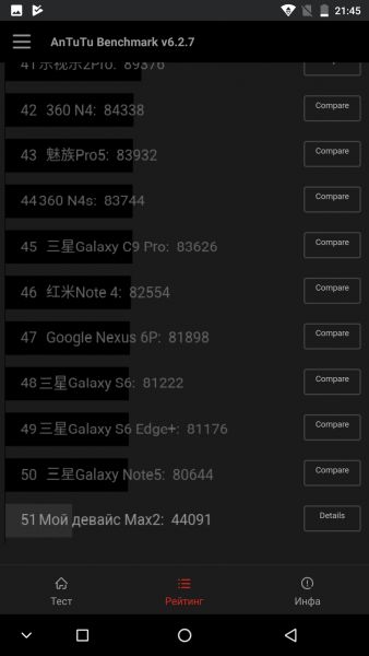 С камерами все куда проще. Они достаточные, но не более того. Радует хорошее качество фронталки и ее дополнительные настройки. Для любителей селфи, это то, что нужно. К сожалению, видео в формате 4К не пишется и воспроизводится с трудом, а значит любителям «гонок за циферками» лучше смотреть на более дорогой Meizu M6 Note, у которого такая возможность есть. Начинка гаджета - одно из лучших решений для этого ценового диапазона. Мощности должно хватить на ближайшие 3-4 года, а для мобильной техники это неплохой результат. Конечно, MTK в Uhans Max 2 уступает Snapdragon’у от Xiaomi Max 2, да и за Meizu M3 MAX не может поспеть, но низкая стоимость все расставляет на свои места, ведь она отличается почти в 2 раза: 136 долларов против 240. В UHANS Max 2, особенно, если опираться на приятный ценник, придраться попросту не к чему. Здесь есть все, что нужно и даже больше. Продвинутая комплектация (в которой разве что наушников нет), хорошая производительность и отличный экран, подкрепленные объемной батареей, делают его лучшей альтернативой более дорогим и менее производительным смартфонам.