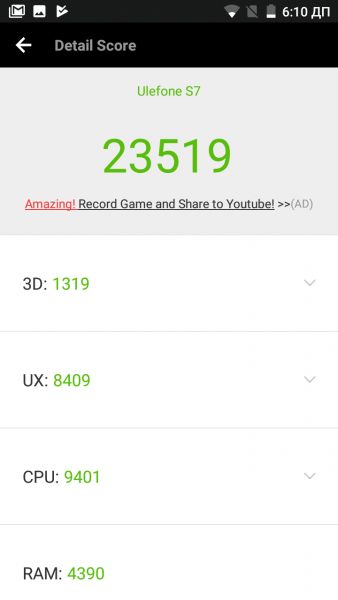 Обзор смартфона UleFone S7 – сверхбюджетник, который может удивитьUleFone S7 – пожалуй, лучший вариант смартфона, который можно приобрести за пятьдесят долларов. В наличии есть все, что нужно для успешных продаж: хороший экран, двойная камера, отдельный музыкальный чип и емкая батарея. Подробнее об этом устройстве читайте в нашей статье. Комплектация Даже коробка здесь может удивить. Открывается она, как это было принято раньше – сверху, где аппарат и инструкции аккуратно уложены внутри. Ничего не выдвигается и внутренних упаковок здесь тоже нет. Комплектация продвинутая, как для смартфона с такой стоимостью: телефон, защитный чехол из силикона, пленка на экран (уже наклеена), инструкции, зарядное устройство и кабель. Есть все необходимое для удобного использования «прямо из коробки». Правда, вот яркая, оранжево-красная наклейка на коробке с подписью «1 Gb» слегка смутила. Хватит ли данного объема оперативной памяти для повседневных задач – покажут тесты. Дизайн На первый взгляд этот телефон не слишком примечателен, из-за множества черт, схожих с моделями Xiaomi, Oukitel и других производителей из поднебесной. Отличия есть. Наиболее выделяющаяся часть устройства, это его задняя крышка. Во-первых, она съемная. Во-вторых, имеет собственную текстуру, состоящую из наклонных 3D решеток. По словам производителя, это должно создавать стереоскопический эффект. Со своей задачей она справляется на ура. Стойкая к отпечаткам, прочная, слегка эластичная, а значит может прослужить очень долго. Для тех же, кому хочется лишний раз перестраховаться, производитель услужливо добавил силиконовый чехол. Не слишком мягкий, но и не дубовый, без особой текстуры (слегка шероховатый на внутренней стороне). Устройство не слишком компактное (145,8х70,8х10,8 мм), что скорее соответствует 5,5 дюймовому смарту, нежели 5. Тем не менее, эргономика хороша, ведь, несмотря на весьма большую толщину, есть возможность управлять смартфоном лишь одной рукой, что является неплохим «бонусом» для многих. Вес аппарата велик, хоть и сделан он из пластмассы (151 грамм). Если же вернутся внешнему виду, то стоит отметить, что на передней стороне размещены камера, датчик расстояния, разговорный динамик и яркая вспышка. Внизу находятся сенсорные клавиши для управления смартфоном. К сожалению, они не подсвечиваются. Левый бок пуст, а вот на правом находятся кнопки управления звуком и блокировкой экрана. Выполнены они из пластика, под цвет корпуса. Нажимаются с небольшим щелчком, без случайных срабатываний. Что ж, на первый взгляд перед нами интересная, небольшая «рабочая машинка», с хорошим потенциалом, а съемная крышка делает хороший намек на «кастомизацию», учитывая разнообразие цветов корпуса: золотой, черный, красный и бирюзовый. Дисплей 5 дюймовый IPS экран, с соотношением сторон 16:9 и разрешением 1280х720. Мультитач поддерживает до 2 одновременных касаний. Установлено защитное стекло Corning Gorilla Glass 3. Плотность пикселей 294, яркость – 420 кд/м2. К сожалению, датчик освещенности отсутствует, а значит и функции автоматической регулировки яркости нет, что, в прочем не мешает общему запасу. Яркое солнце слегка притупляет цвета, но в целом изображения видны, а текст читабелен. Присутствуют стандартные настройки шрифта и интерфейса, а также MiraVision, что настраивает визуальные эффекты. Наибольший минус, по моему мнению,