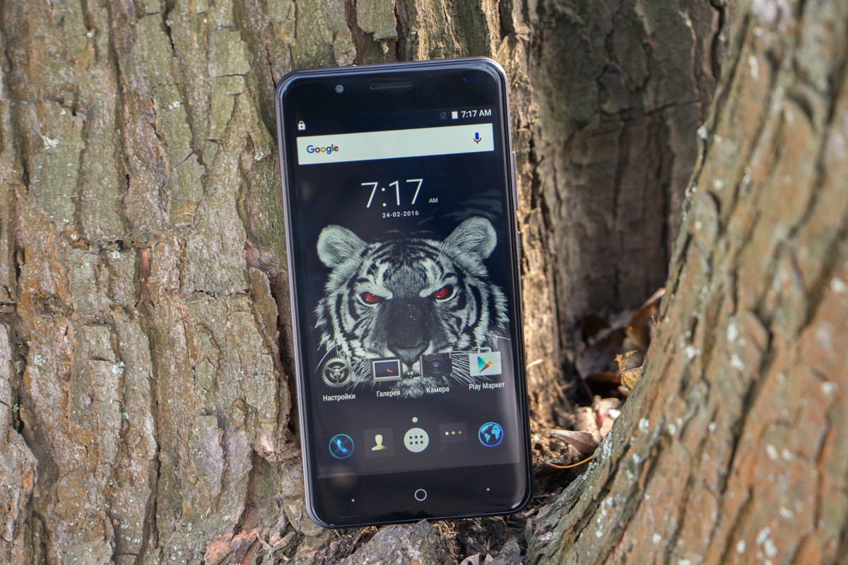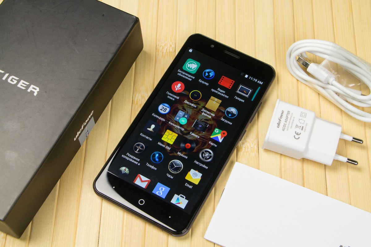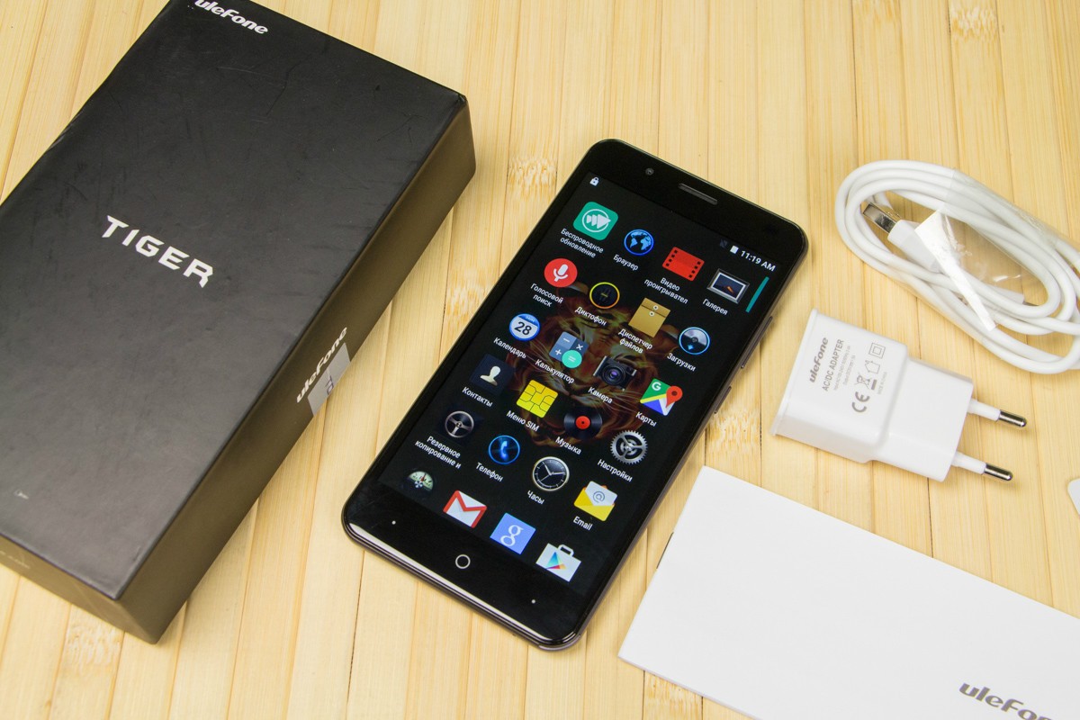 Обзор смартфона Ulefone Tiger – красив и вынослив как тигр!Ulefone Tiger - первый "хищник" в модельном ряду бренда Ulefone. С ценником в $100 этот металлический фаблет интересен большим IPS-экраном, сканером отпечатков пальцев и аккумулятором Sony на 4200 мАч. Выносливости ему, как и тигру, судя по всему, не занимать. А вот настолько ли он зверски быстр в работе, расскажем в обзоре. КомплектацияUlefone Tiger поставляется в черной картонной коробке с минималистичным дизайном — названием аппарата и его производителя. Внутри упаковки также без сюрпризов: адаптер питания, кабель microUSB-USB и руководство пользователя. Дизайн и функциональные элементыЕсли настоящий тигр внешне привлекает внимание полосатой окраской, то смартфон Ulefone Tiger стильным сочетанием стекла, пластика и металла. Надо отдать должное, расцветки у него также трендовые: золотистая, серебристая и темно-фиолетовая, как на обзоре. Правда, последнюю сам производитель почему-то в рекламных брошюрах называет черной. При первом взгляде на смартфон может показаться, что его корпус неразборной и состоит из отдельных элементов: металлической тыльной панели, рамки из такого же материла и пластиковых вставок, прячущих антенны радиомодулей. Однако на практике все эти элементы склеены между собой и являются цельной съемной крышкой, которая как влитая сидит на корпусе гаджета и достаточно проблематично снимается. Под ней расположен аккумулятор на 4200 мАч и три отдельных слота – один для microSD-карты и два для microSIM-карт. Тыльная панель Ulefone Tiger действительно металлическая. На ней виднеются легкие продольные следы аккуратной шлифовки, которая неоднородно отбивает свет, придавая корпусу дополнительный блеск и перелив. Круглый объектив основной 8Мп камеры существенно выступает над поверхностью и его опоясывает металлический обод, окрашенный в цвет модели. Двухцветная вспышка и сканер отпечатков пальцев обозначены зеркальным срезом и наоборот утоплены. Сразу скажу, что биометрический сенсор в гаджете используется исключительно для его разблокировки и подтверждения покупок. Срабатывает четко, без предварительной активации экрана. Запоминает до 5 отпечатков. Окантовка на торцах Ulefone Tiger выполнена под металл, но в реальности это пластик. Снизу на ней обустроен вывод микрофона, а сверху 3.5 мм аудиовыход и порт microUSB. На правой «боковушке» производитель разместил качельку регулировки громкости и кнопку питания с рельефным покрытием. За счет покатой задней крышки палец до обоих дотягивается легко, хотя из-за большого аккумулятора размеры корпуса смартфона получились внушительными и неудобными для управления им одной рукой – 156 x 78 x 9 мм при весе 184 грамм. Механической клавиши «Home» аппарат лишен – в наличии три сенсорных кнопки управления без подсветки. Над экран помимо датчиков освещения и приближения, обустроен LED-индикатор, прорезь разговорного динамика и объектив 5Мп камеры. ДисплейЭкран Ulefone Tiger получил удобную для мультимедийных развлечений и чтения диагональ в 5.5 дюймов плюс широкие углы обзора. При разрешении 1280х720 точек о режущей глаз пикселизации говорить не приходиться. На расстоянии в 20-30 см от глаз шрифты выглядят гладкими, без «зазубрин». Сперва может показаться, что экран смартфона немного желтит по сравнению с дисплеями других смартфонов, но никакого заводского брака здесь нет — привычный цвет наст