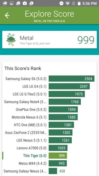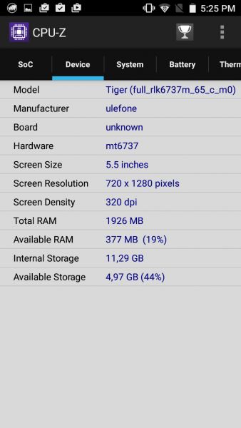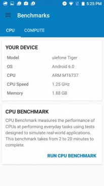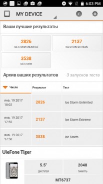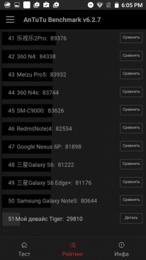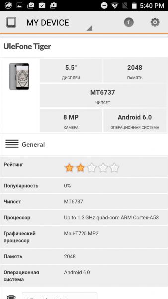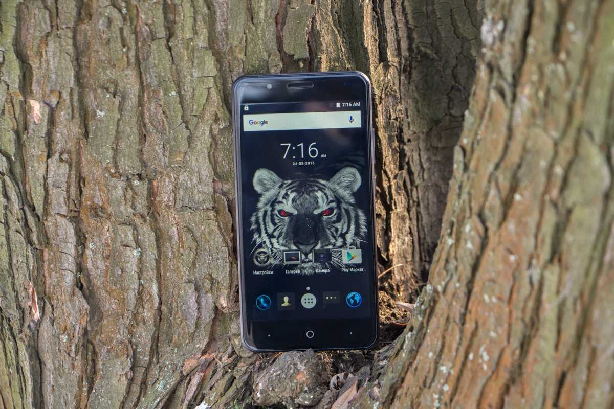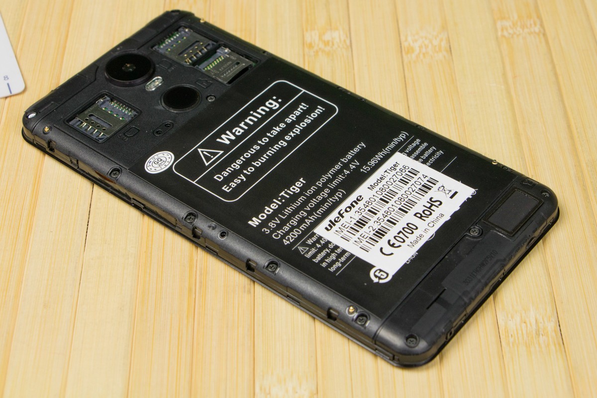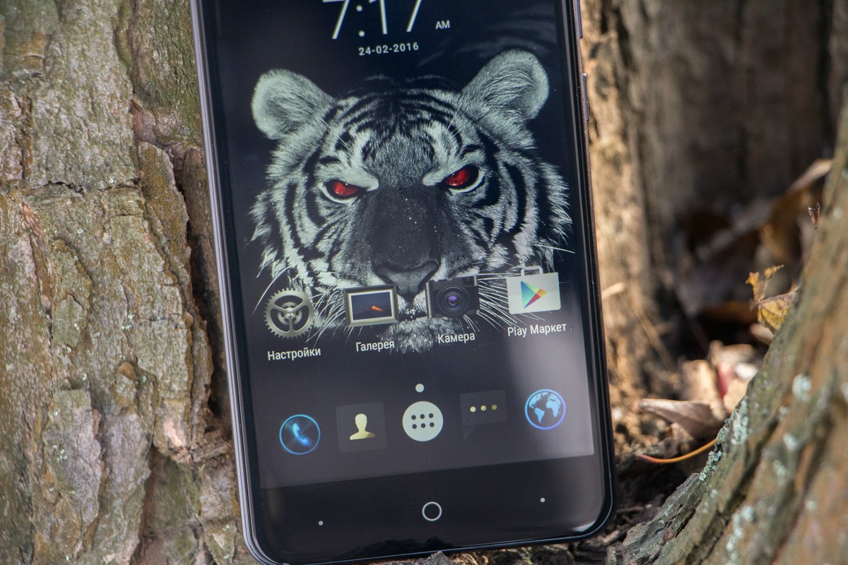 Обзор смартфона Ulefone Tiger – красив и вынослив как тигр!Ulefone Tiger - первый "хищник" в модельном ряду бренда Ulefone. С ценником в $100 этот металлический фаблет интересен большим IPS-экраном, сканером отпечатков пальцев и аккумулятором Sony на 4200 мАч. Выносливости ему, как и тигру, судя по всему, не занимать. А вот настолько ли он зверски быстр в работе, расскажем в обзоре. КомплектацияUlefone Tiger поставляется в черной картонной коробке с минималистичным дизайном — названием аппарата и его производителя. Внутри упаковки также без сюрпризов: адаптер питания, кабель microUSB-USB и руководство пользователя. Дизайн и функциональные элементыЕсли настоящий тигр внешне привлекает внимание полосатой окраской, то смартфон Ulefone Tiger стильным сочетанием стекла, пластика и металла. Надо отдать должное, расцветки у него также трендовые: золотистая, серебристая и темно-фиолетовая, как на обзоре. Правда, последнюю сам производитель почему-то в рекламных брошюрах называет черной. При первом взгляде на смартфон может показаться, что его корпус неразборной и состоит из отдельных элементов: металлической тыльной панели, рамки из такого же материла и пластиковых вставок, прячущих антенны радиомодулей. Однако на практике все эти элементы склеены между собой и являются цельной съемной крышкой, которая как влитая сидит на корпусе гаджета и достаточно проблематично снимается. Под ней расположен аккумулятор на 4200 мАч и три отдельных слота – один для microSD-карты и два для microSIM-карт. Тыльная панель Ulefone Tiger действительно металлическая. На ней виднеются легкие продольные следы аккуратной шлифовки, которая неоднородно отбивает свет, придавая корпусу дополнительный блеск и перелив. Круглый объектив основной 8Мп камеры существенно выступает над поверхностью и его опоясывает металлический обод, окрашенный в цвет модели. Двухцветная вспышка и сканер отпечатков пальцев обозначены зеркальным срезом и наоборот утоплены. Сразу скажу, что биометрический сенсор в гаджете используется исключительно для его разблокировки и подтверждения покупок. Срабатывает четко, без предварительной активации экрана. Запоминает до 5 отпечатков. Окантовка на торцах Ulefone Tiger выполнена под металл, но в реальности это пластик. Снизу на ней обустроен вывод микрофона, а сверху 3.5 мм аудиовыход и порт microUSB. На правой «боковушке» производитель разместил качельку регулировки громкости и кнопку питания с рельефным покрытием. За счет покатой задней крышки палец до обоих дотягивается легко, хотя из-за большого аккумулятора размеры корпуса смартфона получились внушительными и неудобными для управления им одной рукой – 156 x 78 x 9 мм при весе 184 грамм. Механической клавиши «Home» аппарат лишен – в наличии три сенсорных кнопки управления без подсветки. Над экран помимо датчиков освещения и приближения, обустроен LED-индикатор, прорезь разговорного динамика и объектив 5Мп камеры. ДисплейЭкран Ulefone Tiger получил удобную для мультимедийных развлечений и чтения диагональ в 5.5 дюймов плюс широкие углы обзора. При разрешении 1280х720 точек о режущей глаз пикселизации говорить не приходиться. На расстоянии в 20-30 см от глаз шрифты выглядят гладкими, без «зазубрин». Сперва может показаться, что экран смартфона немного желтит по сравнению с дисплеями других смартфонов, но никакого заводского брака здесь нет — привычный цвет наст