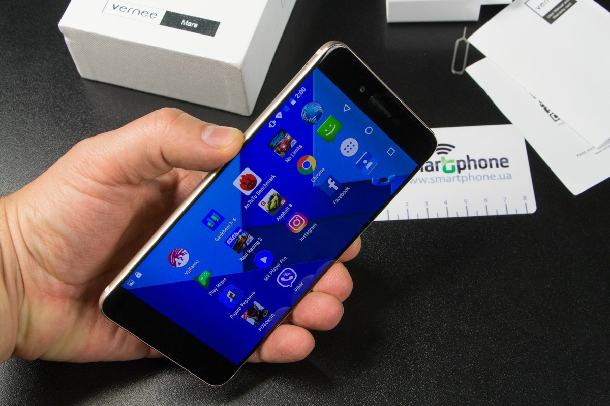 Обзор смартфона Vernee Mars за $249.99: красивый, интересный и доступныйПрошел всего месяц с момента презентации и старта официальных продаж Vernee Mars, а Smartphone.ua уже готов рассказать своим читателям о возможностях этой красивой новинки, которая внешне имеет небольшое сходство с iPhone 7, а по части дисплея даже в чем-то его превосходит. Подробнее о 5,5-дюймовом смартфоне за $249.99 читайте в нашем обзоре. Опыт эксплуатацииНачну с впечатлений от опыта эксплуатации данной модели. За двухнедельный период пользования трубкой от нее остались только положительные эмоции. Ну а кому не понравится тонкий, красивый, производительный и стабильно работающий гаджет? Ответ риторический, но тех, кто скажет, что телефон не для него, стоит отправлять только к устройствам от Apple. Кстати, немного от флагмана из Купертино есть и в Vernee Mars. Это полностью металлический корпус, расположение камеры и полосок, разрывающих тыльную сторону для корректной работы радиомодулей. Последние выполнены на стыке торцов и задней части в стиле Meizu Pro 6 и iPhone 7. Важно отметить, завистливые взгляды обладателей того же iPhone. Причина кроется в размерах дисплея. Он сравним с моделью с приставкой Plus, но за счет меньших габаритов значительно выигрывает по полезной площади отображения данных. 81% лицевой части занимает видимая область. Для справки, трубок, которые обошли Vernee Mars по этому показателю, очень мало, так что самое время раскрыть все технические детали модели. Дизайн и корпусВнешность Vernee Mars привлекает, особенно когда включается экран и пользователь видит тонкий безель, отделяющий металл на ободе и дисплей. Красивый полированный срез на стыке стекла Gorilla Glass 3 и «боковушек» не бросается в глаза и придает изысканности всей конструкции. Толщина этого элемента всего 1 мм. Как уже отмечалось выше, корпус цельнометаллический. Сборка выполнена без нареканий на качество, а все элементы конструкции установлены ровно и без лишних зазоров. В руке смартфон очень приятен и реальный опыт эксплуатации показал сходство в управлении им с моделями, у которых дисплей имеет диагональ 5 дюймов. А здесь совсем не скромные 5,5, которые не приносят дискомфорт даже при работе одной рукой. Способствует этому и небольшой вес Vernee Mars - 161 грамм. Габариты - 151.6 х 73.7 х 7.6 мм. Они, кстати, подтверждают тот факт, что устройство заслуженно получило звание одного из самых узких 5,5-дюймовых смартфонов в мире. Металл, который использовал производитель, очень стойкий к царапинам. Это алюминий 6000-й серии и в нашем случае золотого оттенка. Желающие могут приобрести также вариант в сером. Покрытие матовое, в руке не скользит, так что устройство из нее не выскользнет. Отмечу также удобное расположение физических кнопок управления. Они находятся справа под большим пальцем. Под клавишей управления громкостью и питания разместили сканер отпечатка пальцев со скоростью срабатывания в 0.1 секунды. Такой формат знаком нам по смартфонам Sony и для некоторых покупателей это самый приемлемый вариант, поскольку перехватывать трубку не нужно для ее включения - достаточно прижать большой палец к площадке, которая размещена в привычном для кнопки питания месте. Работает сканер без ошибок, но к нему нужно привыкнуть. На верхнем торце устройства размещен только 3,5 мм аудиоразъем, а внизу - микрофон, мультимедийный динамик и USB Type-C порт. Кабель для подза