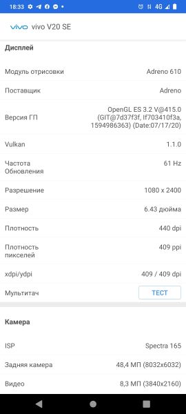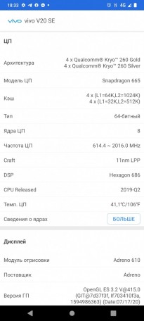 В отличие от vivo V20, который из коробки поставлялся с Android 11, аппаратное обеспечение V20 SE запускается на Android 10. Cкорее всего смартфон получит Android 11 в ближайшем будущем. Батарея V20 укомплектован аккумулятором емкостью 4100 мАч, который впечатляет 12 часами просмотра видео на подсветке в 25% от максимума. Расход в играх значительно выше - на 100% яркости дисплея играть в World of Tanks можно всего 5,5-6 часов. Мне батареи на день хватало, а на выходных, когда по работе использовал его меньше обычного - на два дня. Смартфоном поддерживается быстрая зарядки 33 Вт. За 30 минут устройство заряжается до 50%, а чуть больше чем за час - до 100%. Это очень удобное и полезное дополнение. Камеры Vivo V20 SE оснащен тройной камерой: 48-мегапиксельной основной, 8-мегапиксельной сверхширокоугольной, которая также может выполнять макросъемку, и 2-мегапиксельной «камерой с эффектом боке». Приложение камеры простое в использовании. AI включен по умолчанию, и телефон быстро определяет, на какой объект он указывает. Также предлагаются различные режимы съемки в зависимости от сцены. При дневном свете Vivo V20 SE делает достойные снимки с хорошей детализацией объектов даже на расстоянии. При съемке на улице V20 SE включает HDR. Переключение на сверхширокоугольную камеру обеспечивает более широкий захват, но теряются детали. Объекты на расстоянии не были такими четкими, как на фотографиях, сделанных с помощью основной камеры. Также заметны искажения по краям. Смартфон умеет добавлять фону эффект глубины. V20 SE использует сверхширокоугольную камеру для макросъемки и позволяет вам максимально приблизиться к объекту. В целом производительность камеры при слабом освещении средняя. Обязательно включайте ночной режим. V20 SE держит шум под контролем, но фотографии выглядят сглаженными, а объекты на расстоянии слегка размазаны. Включение ночного добавляет яркости и детализации, но для обработки каждого снимка требуется 3-5 секунд. И в это время нельзя двигать устройство. V20 SE делает хорошие селфи как при дневном, так и при слабом освещении. Вы можете делать портретные снимки с помощью селфи-камеры, а V20 SE автоматически размывает фон. Это реализовано программно. Максимальная запись видео основной камерой - 4K и 1080p для селфи. Ниже примеры записанных мной роликов. Основная камера днем Основная камера в помещении Основная камера ночью Фронтальная камера Вывод Смартфон vivo V20 SE это слегка, а может и не совсем слегка, упрощенная версия модели V20. Так добились снижения цены и количеств баллов в тесте на производительность Antutu. Производитель точно не экономил на дизайне и установил в смартфоне хорошие камеры. Будут ли запускаться в телефоне тяжелые игры? Будут, только рассчитывайте на среднюю детализацию, чипсет в паре с графическим чипом не удивят вас моментальной реакцией на все ваши запросы. У V20 SE много конкурентов, которые способны обойти обозреваемый смартфон в отдельных моментах. Но в целом, если нацелились на покупку vivo и его внешность вас привлекает, не прогадаете.