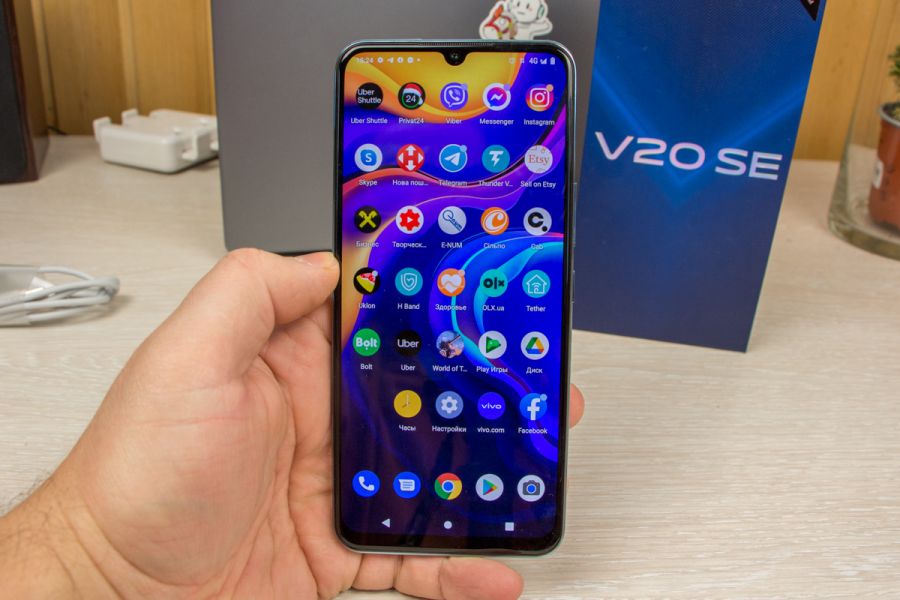 Обзор смартфона vivo V20 SE: над дизайном постаралисьV20 SE - недорогой смартфон, но со своими особенностями, которые могут понравиться. На них и становимся в этом обзоре. Также поделюсь впечатлениями от смартфона, его возможностями по части производительности и примерами съемки камер. vivo V20 SE интересен, красив и хорошо укомплектован. Подробности далее. Дизайн и Корпус Одно из важных преимуществ, на котором сосредоточили внимание в модели V20 SE - дизайн. Берете смартфон в руки и понимаете, что в vivo постарались. Дизайн граничит с премиальным сегментом и это добавляет желания купить и владеть этим телефоном. Не смущают даже “старомодно” вписанная в каплю фронтальная камера. На тыльной стороне вертикально выстроены камеры, площадка с которыми немного выступает. Задняя панель получила двухцветную градиентную текстуру, которая меняет оттенок в зависимости от угла обзора. Поверхность собирает отпечатки пальцев, но их не видно. Это же касается и мелких царапин. Сборка без замечаний. Из-за использования пластика на задней панели телефон получился легким и его удобно держать одной рукой, если она у вас не очень маленькая. Дисплей V20 SE оснащен 6,44-дюймовым дисплеем на базе Super AMOLED с разрешением Full HD+. У смартфона экран без изгибов, а фронтальная камера размещена в каплевидном вырезе. Это уже не является трендом, такой формат размещения фронталки немного “устарел”. Углы обзора хорошие, минимальный и максимальный уровень подсветки достаточны. Точность цветопередачи и контрастность также понравятся. Частота матрицы зафиксирована на 60 Гц. Аппаратная начинка и ОС Для обозреваемой модели производитель выбрал чипсет Qualcomm Snapdragon 665 и графический процессор Adreno 610. Вычислительные модули дополнили 8 ГБ ОЗУ и 128 ГБ внутренней памяти, которая дополнительно расширяется карточками microSD без ущерба для двух слотов под nanoSIM. V20 SE не запускает требовательные к графике и детализации игры на максимальной детализации. Но даже средних значений достаточно, чтобы получить наслаждение от игрового процесса. Единственный небольшой нюанс - игры запускаются не моментально.