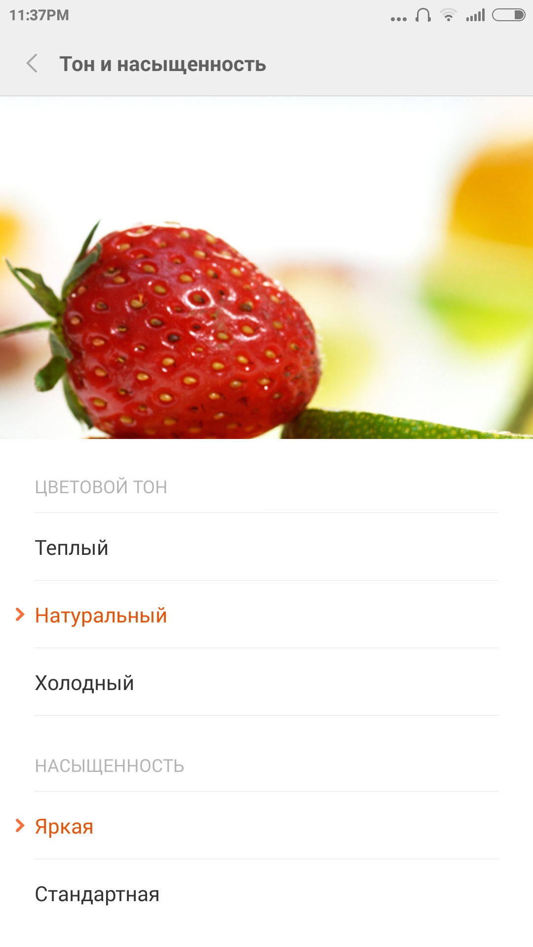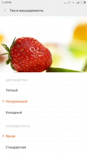 Смартфон Mi4 оснастили 5-дюймовым Full HD дисплеем. При разрешении 1080х1920 плотность пикселей на дюйм составляет 441, что исключает какую-либо зернистость. Производитель выбрал для своего флагмана IPS-матрицу с отличными углами обзора и цветопередачей. Как ни крути трубку, изображение остается читаемым при любом наклоне, а цвета не теряют своего реального оттенка. Максимального уровня яркости достаточно даже для работы при существенном переизбытке солнечного цвета. В настройках экрана предусмотрена возможность изменения цветового тона и насыщенности.