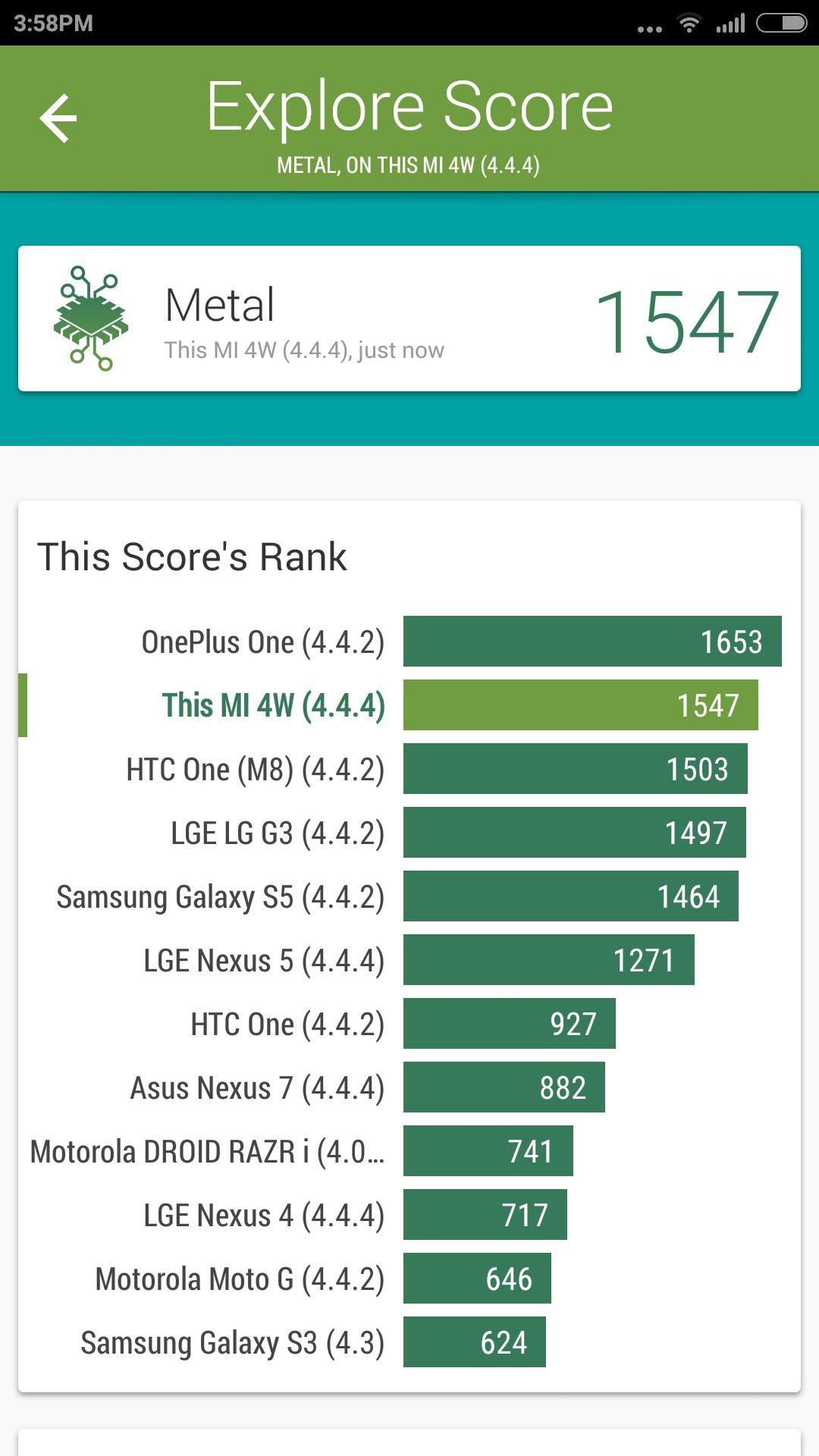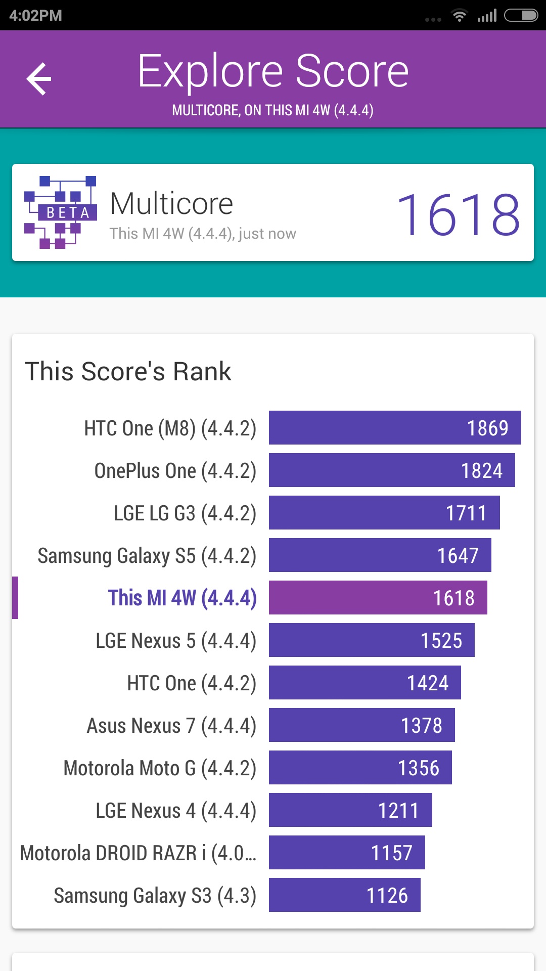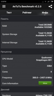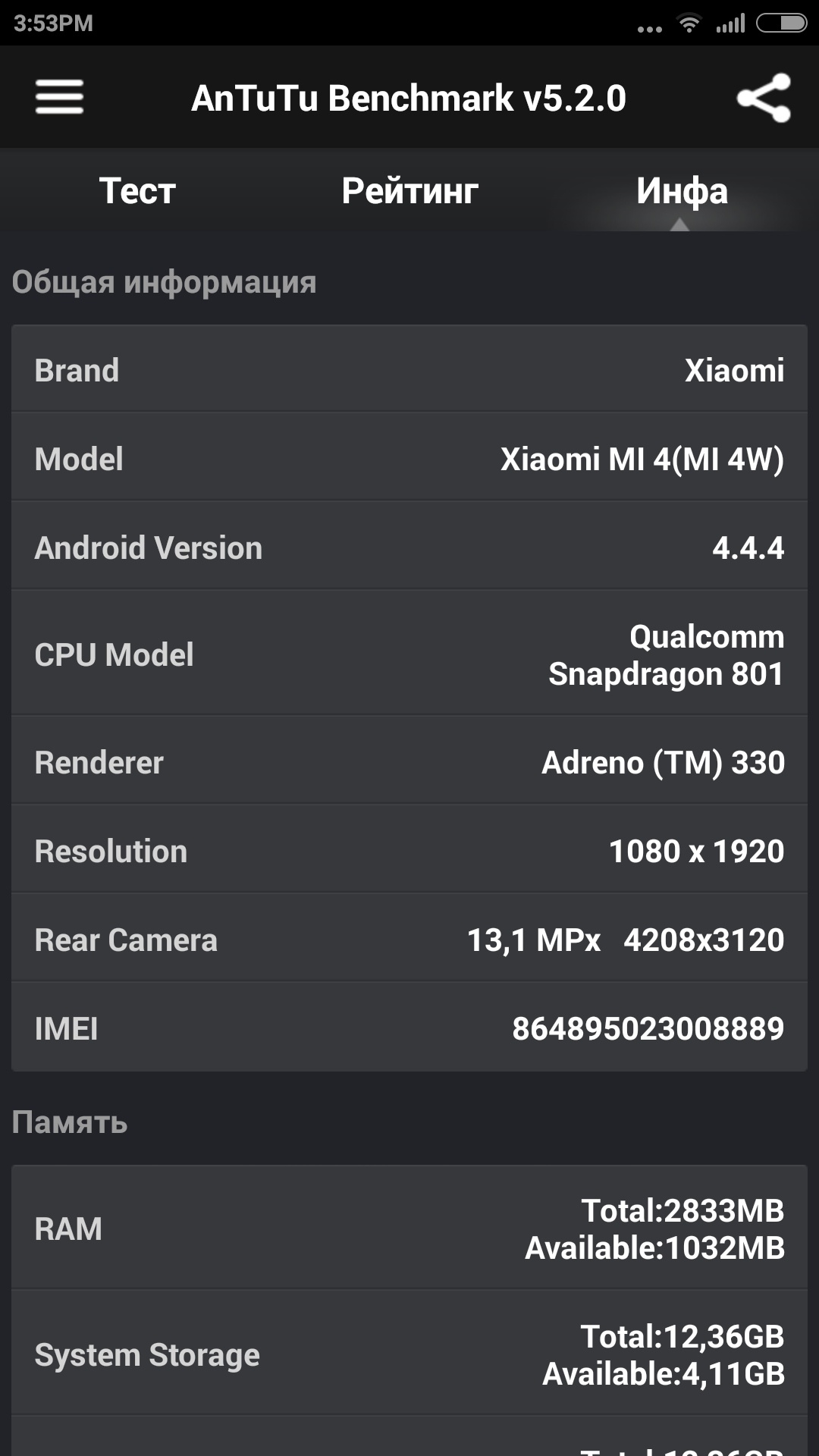 Базой для вычислительной платформы Xiaomi Mi4 был выбран процессор Qualcomm Snapdragon 801 на 4-х ядрах с тактовой частотой в 2,5 ГГц. Графическая подсистема Adreno 330 дополнена 3 ГБ оперативной памяти и 16 ГБ встроенной, из которых пользователю доступно немногим больше 13 ГБ. В целом всего этого достаточно и для просмотра видео в отличном качестве, и для самых крутых 3D игр, и даже для съемки видеороликов в 4К разрешении.