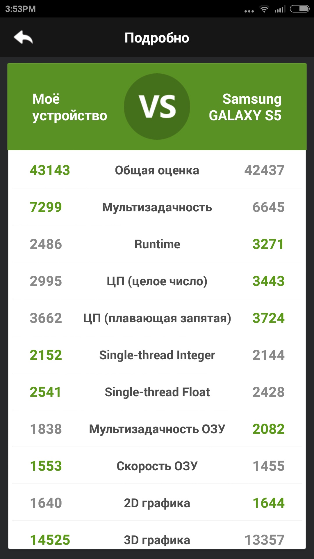 В бенчмарках смартфон показывает отличные результаты и в некоторых, например, Antutu «бьет» по многим показателям очень именитых конкурентов. Это видно на скриншотах ниже.