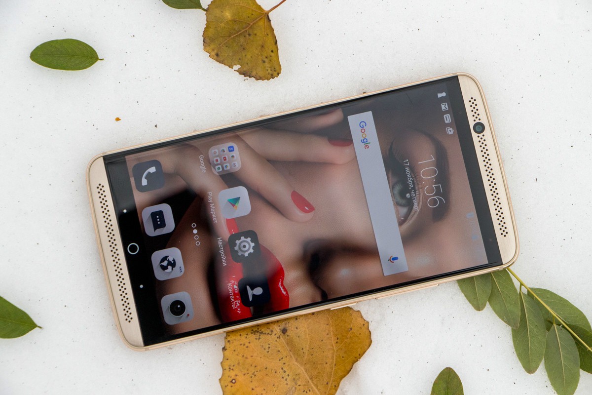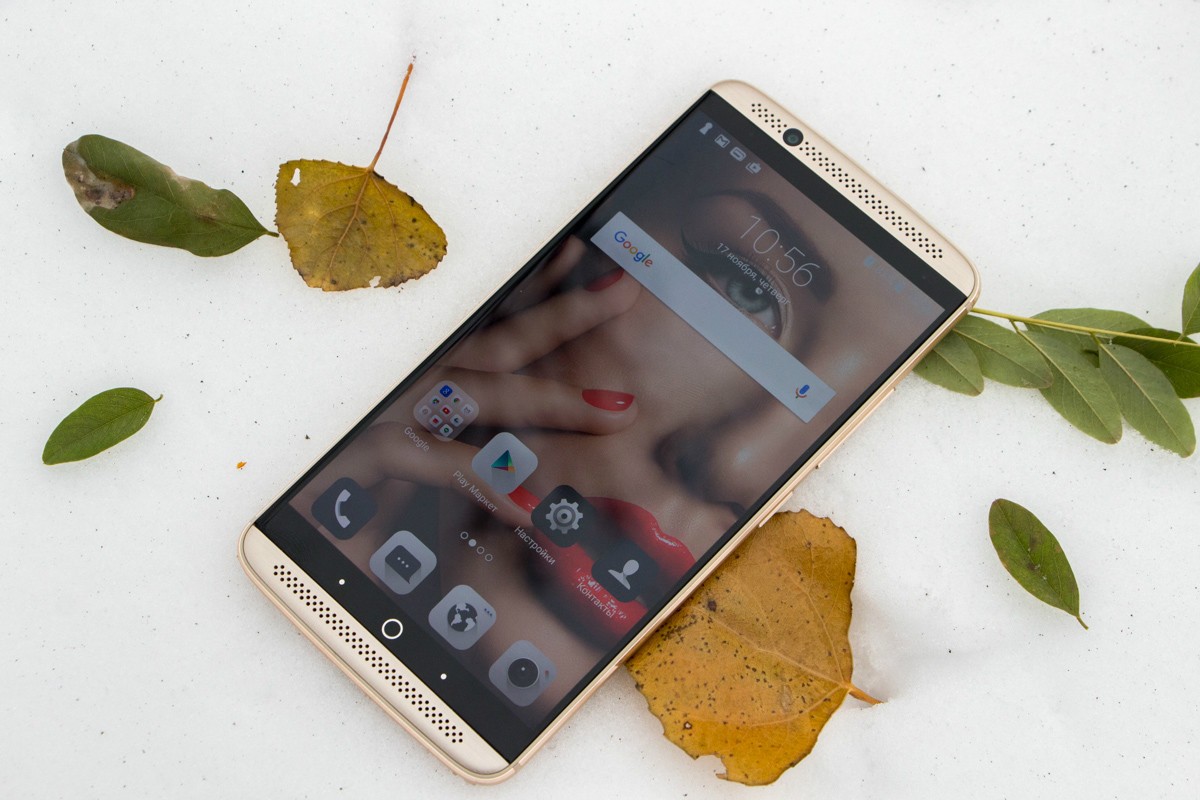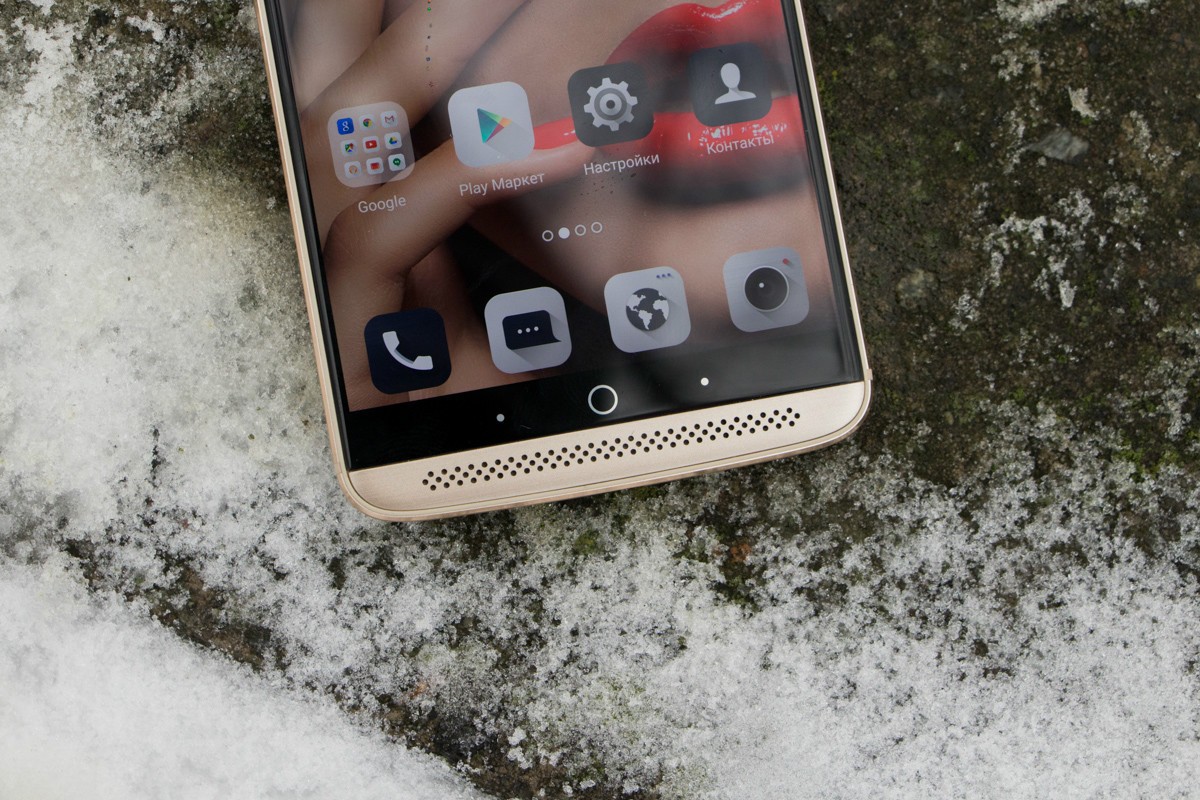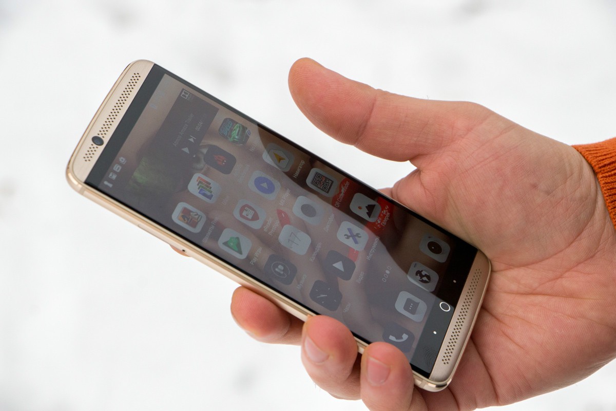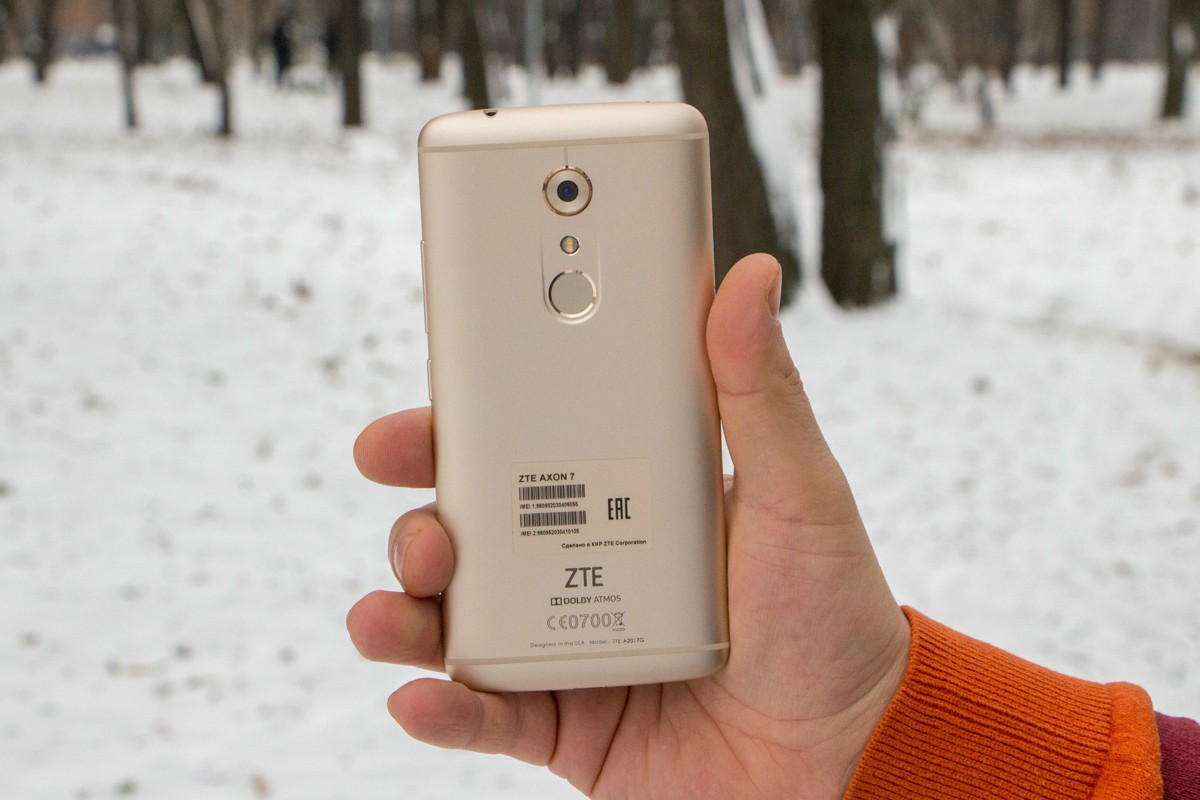 Обзор смартфона ZTE Axon 7: билет в первый классZTE Axon 7 способен показать и доказать поклонникам флагманских продуктов, что производитель не из первой тройки всегда может найти в смартфоне тот элемент, который можно усовершенствовать даже в идеальном устройстве. Такие компоненты мы нашли в тестируемом телефоне, например, динамики и камера. А вот, есть ли у Axon 7 шансы закрепиться в премиальном сегменте, попробуем разобраться в обзоре. Дизайн и корпусВнешность ZTE Axon 7 запоминающая. Особенно красива в данной трубке лицевая сторона. Нам не удалось найти схожести с другими телефонами, так что и дизайнеры, и инженеры бренда заслуживают на похвалу. Центральными элементами фронтальной части стоит считать прорези под и над дисплеем - это действительно рабочие выходы стереодинамиков, так что никаких бутафорий. Дополняет элегантность конструкции и внешнюю дороговизну изогнутое стекло Gorilla Galss 4 и узкие рамки вокруг экрана. Задняя крышка не столь изящна и своеобразна, как передняя. Здесь видим уже классическую компоновку из блока вспышки и камеры, плюс аккуратные пластиковые швы под антенны. С тыльной стороны не все гладко, правда, это только в плане расположения элементов. Камера немного выступает, а сканер отпечатка пальцев слегка утоплен. Фотомодуль защищен металлической окантовкой, аналогичный срез и вокруг датчика. Упоминаемый нами сканер реагирует на нажатие без ошибок, срабатывает быстро (0.25 с), хранит в памяти до 5 отпечатков. Остальное покрытие не так сильно блестит, но это не делает его менее симпатичным. Кстати, все панельки телефона выполнены из металла. Даже если возникают в этом сомнения, можете их смело отбрасывать, в флагмане используются только благородные материалы. За время теста покрытие не дало усомниться в своей стойкости. Однако чехол лишним не будет. Отлично выполняет защитную функции аксессуар из комплекта поставки - он тонкий, прозрачный и приятный на ощупь. Нажатие на кнопки смартфона в нем удобное, доступ к другим разъемам и элементам не ограничен. Покупателю предоставляется на выбор два цвета корпуса Axon 7. Первый – темно-серый, а второй - золотой. У обоих на тыльной стороне металл не маркий и не скользкий. Габариты позволяют владельцем большой ладони работать с телефоном одной рукой. Для остальных иногда придется использовать обе. Габариты корпуса - 151.7 x 75 x 7.9 мм, а вес - 175 г. Клавиши управления звуком и питания находятся справа. Они не очень большие по размерам, но нажимаются безошибочно. Левую сторону занял гибридный слот под две nano-SIM карты или одну симку и карту памяти. Наверху 3.5 мм аудиовыход, а внизу USB Type-C порт. Замечаний к производителю по сборке и подбору материалов для модели Axon 7 у нас нет. Стыки идеальны, что достигается, в том числе и неразборной конструкцией корпуса. Есть в этом флагмане и небольшое упущение со стороны разработчиков - отсутствие защиты от влаги и пыли. По крайней мере, официально это нигде не обозначено. Аппаратная начинкаЧипсет, на базе которого построен смартфон, на момент подготовки этого материала выводит его в десятку самых производительных телефонов, по данным Antutu. Хотя трубка и 4-ядерная, но некоторые из этих ядер могут разгоняться до 2.15 ГГц (Qualcomm Snapdragon 820 MSM8996 - 2x Kryo 2,15 ГГц + 2x Kryo 1,6 ГГц). В качестве графического адаптера задействован Adreno 530. Объем оперативнйо памяти – 4 ГБ. Ниже на скриншота