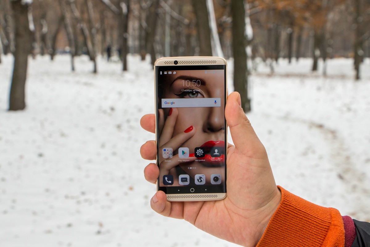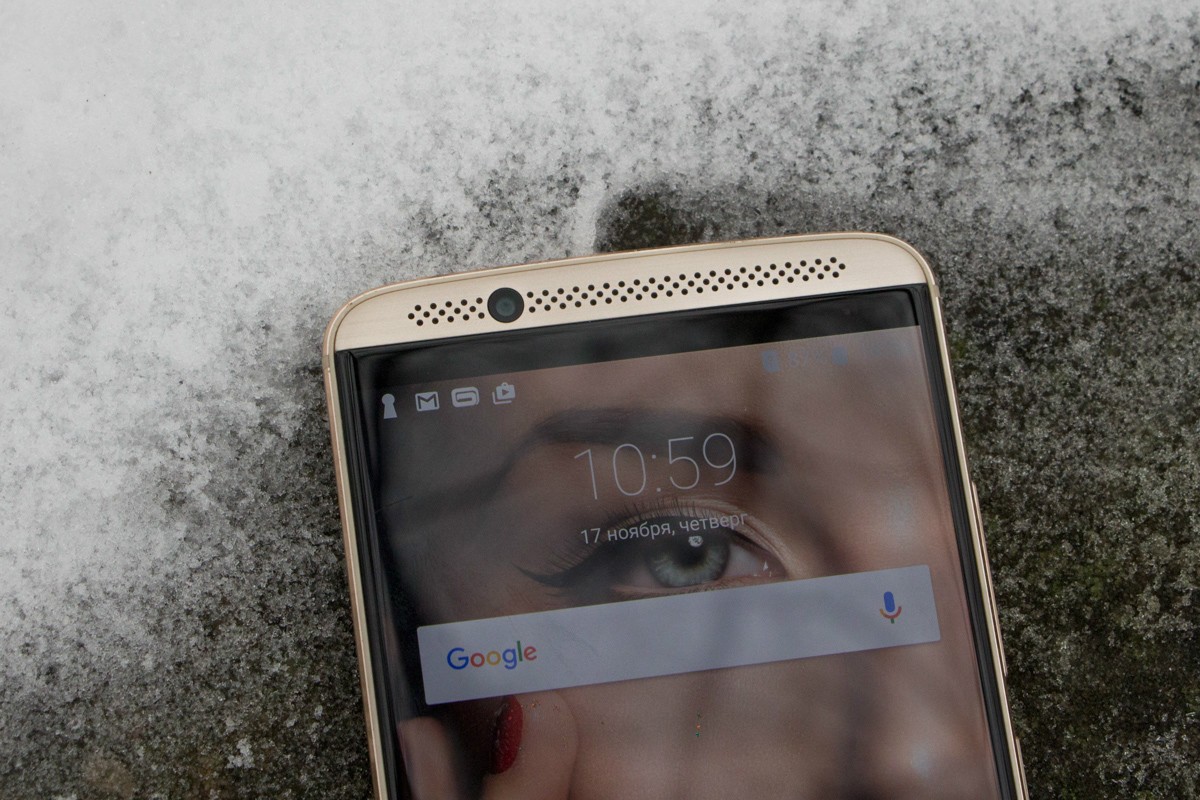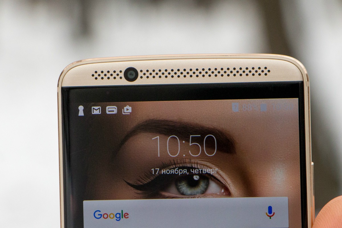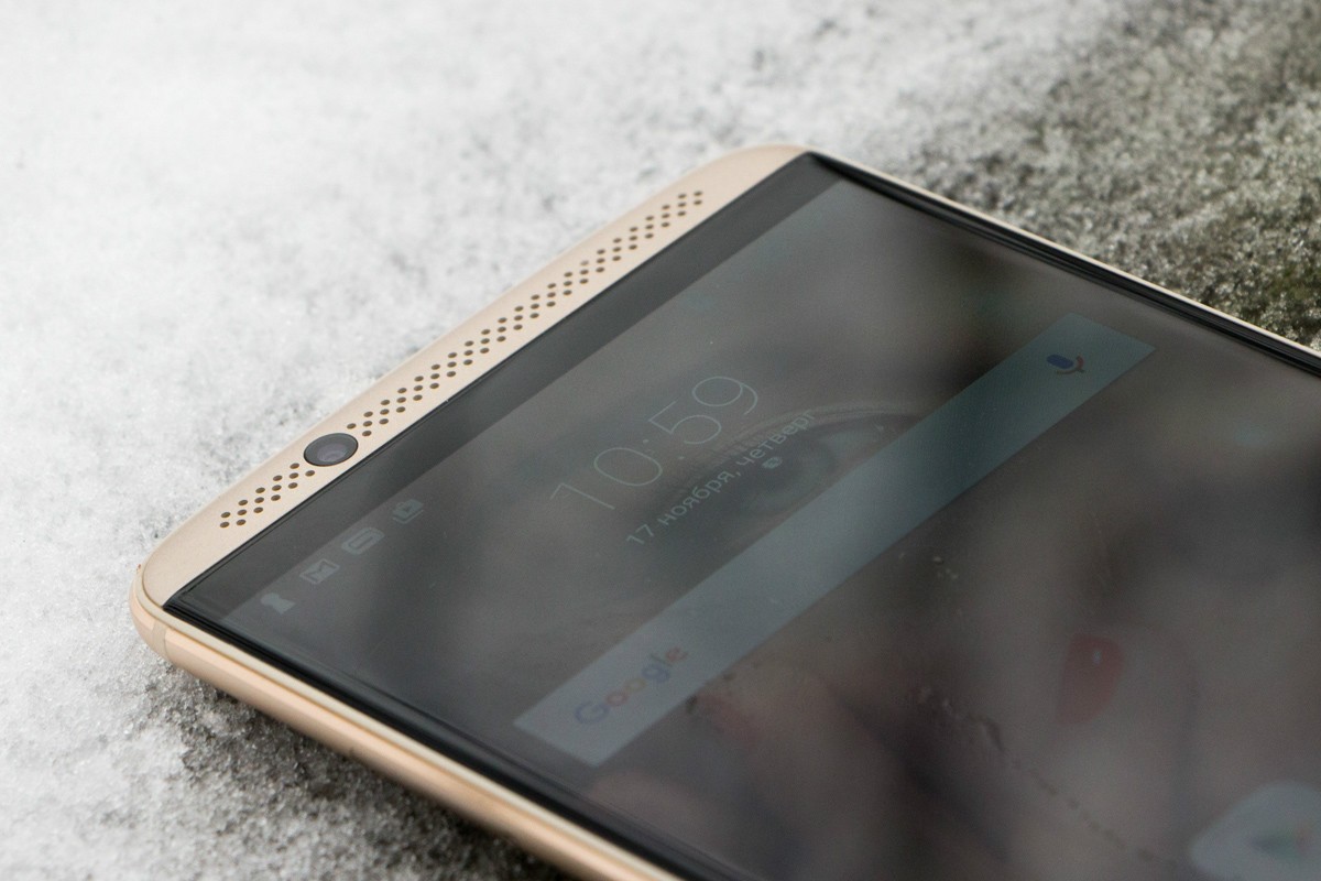 Обзор смартфона ZTE Axon 7: билет в первый классZTE Axon 7 способен показать и доказать поклонникам флагманских продуктов, что производитель не из первой тройки всегда может найти в смартфоне тот элемент, который можно усовершенствовать даже в идеальном устройстве. Такие компоненты мы нашли в тестируемом телефоне, например, динамики и камера. А вот, есть ли у Axon 7 шансы закрепиться в премиальном сегменте, попробуем разобраться в обзоре. Дизайн и корпусВнешность ZTE Axon 7 запоминающая. Особенно красива в данной трубке лицевая сторона. Нам не удалось найти схожести с другими телефонами, так что и дизайнеры, и инженеры бренда заслуживают на похвалу. Центральными элементами фронтальной части стоит считать прорези под и над дисплеем - это действительно рабочие выходы стереодинамиков, так что никаких бутафорий. Дополняет элегантность конструкции и внешнюю дороговизну изогнутое стекло Gorilla Galss 4 и узкие рамки вокруг экрана. Задняя крышка не столь изящна и своеобразна, как передняя. Здесь видим уже классическую компоновку из блока вспышки и камеры, плюс аккуратные пластиковые швы под антенны. С тыльной стороны не все гладко, правда, это только в плане расположения элементов. Камера немного выступает, а сканер отпечатка пальцев слегка утоплен. Фотомодуль защищен металлической окантовкой, аналогичный срез и вокруг датчика. Упоминаемый нами сканер реагирует на нажатие без ошибок, срабатывает быстро (0.25 с), хранит в памяти до 5 отпечатков. Остальное покрытие не так сильно блестит, но это не делает его менее симпатичным. Кстати, все панельки телефона выполнены из металла. Даже если возникают в этом сомнения, можете их смело отбрасывать, в флагмане используются только благородные материалы. За время теста покрытие не дало усомниться в своей стойкости. Однако чехол лишним не будет. Отлично выполняет защитную функции аксессуар из комплекта поставки - он тонкий, прозрачный и приятный на ощупь. Нажатие на кнопки смартфона в нем удобное, доступ к другим разъемам и элементам не ограничен. Покупателю предоставляется на выбор два цвета корпуса Axon 7. Первый – темно-серый, а второй - золотой. У обоих на тыльной стороне металл не маркий и не скользкий. Габариты позволяют владельцем большой ладони работать с телефоном одной рукой. Для остальных иногда придется использовать обе. Габариты корпуса - 151.7 x 75 x 7.9 мм, а вес - 175 г. Клавиши управления звуком и питания находятся справа. Они не очень большие по размерам, но нажимаются безошибочно. Левую сторону занял гибридный слот под две nano-SIM карты или одну симку и карту памяти. Наверху 3.5 мм аудиовыход, а внизу USB Type-C порт. Замечаний к производителю по сборке и подбору материалов для модели Axon 7 у нас нет. Стыки идеальны, что достигается, в том числе и неразборной конструкцией корпуса. Есть в этом флагмане и небольшое упущение со стороны разработчиков - отсутствие защиты от влаги и пыли. По крайней мере, официально это нигде не обозначено. Аппаратная начинкаЧипсет, на базе которого построен смартфон, на момент подготовки этого материала выводит его в десятку самых производительных телефонов, по данным Antutu. Хотя трубка и 4-ядерная, но некоторые из этих ядер могут разгоняться до 2.15 ГГц (Qualcomm Snapdragon 820 MSM8996 - 2x Kryo 2,15 ГГц + 2x Kryo 1,6 ГГц). В качестве графического адаптера задействован Adreno 530. Объем оперативнйо памяти – 4 ГБ. Ниже на скриншота