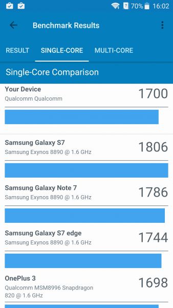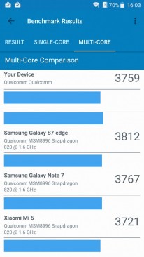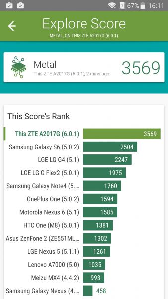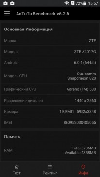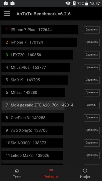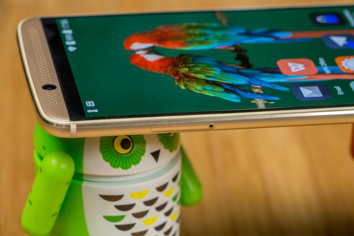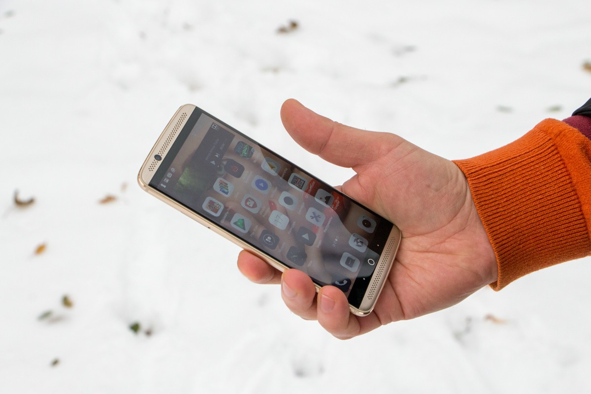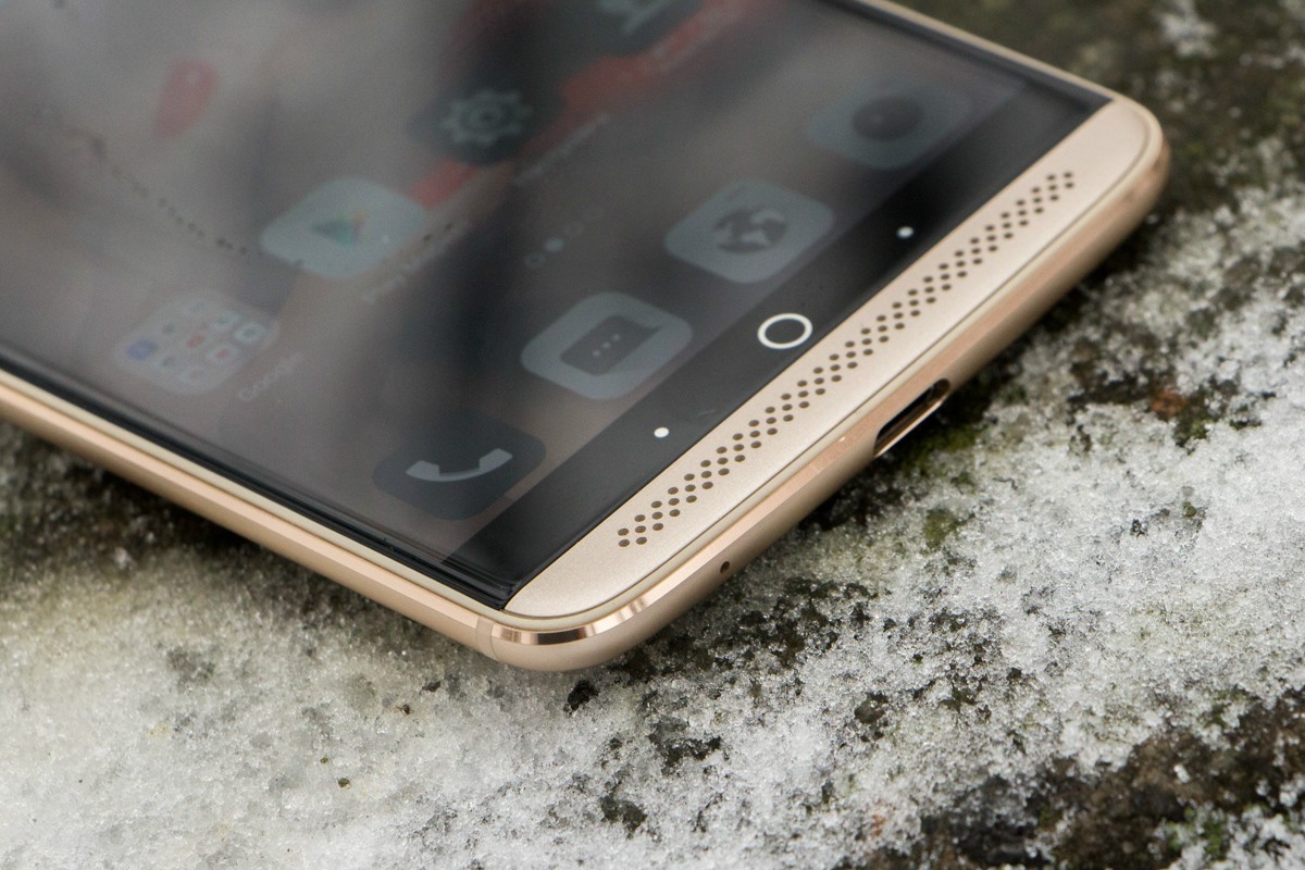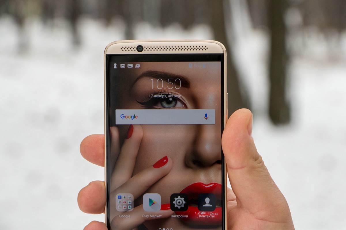 Обзор смартфона ZTE Axon 7: билет в первый классZTE Axon 7 способен показать и доказать поклонникам флагманских продуктов, что производитель не из первой тройки всегда может найти в смартфоне тот элемент, который можно усовершенствовать даже в идеальном устройстве. Такие компоненты мы нашли в тестируемом телефоне, например, динамики и камера. А вот, есть ли у Axon 7 шансы закрепиться в премиальном сегменте, попробуем разобраться в обзоре. Дизайн и корпусВнешность ZTE Axon 7 запоминающая. Особенно красива в данной трубке лицевая сторона. Нам не удалось найти схожести с другими телефонами, так что и дизайнеры, и инженеры бренда заслуживают на похвалу. Центральными элементами фронтальной части стоит считать прорези под и над дисплеем - это действительно рабочие выходы стереодинамиков, так что никаких бутафорий. Дополняет элегантность конструкции и внешнюю дороговизну изогнутое стекло Gorilla Galss 4 и узкие рамки вокруг экрана. Задняя крышка не столь изящна и своеобразна, как передняя. Здесь видим уже классическую компоновку из блока вспышки и камеры, плюс аккуратные пластиковые швы под антенны. С тыльной стороны не все гладко, правда, это только в плане расположения элементов. Камера немного выступает, а сканер отпечатка пальцев слегка утоплен. Фотомодуль защищен металлической окантовкой, аналогичный срез и вокруг датчика. Упоминаемый нами сканер реагирует на нажатие без ошибок, срабатывает быстро (0.25 с), хранит в памяти до 5 отпечатков. Остальное покрытие не так сильно блестит, но это не делает его менее симпатичным. Кстати, все панельки телефона выполнены из металла. Даже если возникают в этом сомнения, можете их смело отбрасывать, в флагмане используются только благородные материалы. За время теста покрытие не дало усомниться в своей стойкости. Однако чехол лишним не будет. Отлично выполняет защитную функции аксессуар из комплекта поставки - он тонкий, прозрачный и приятный на ощупь. Нажатие на кнопки смартфона в нем удобное, доступ к другим разъемам и элементам не ограничен. Покупателю предоставляется на выбор два цвета корпуса Axon 7. Первый – темно-серый, а второй - золотой. У обоих на тыльной стороне металл не маркий и не скользкий. Габариты позволяют владельцем большой ладони работать с телефоном одной рукой. Для остальных иногда придется использовать обе. Габариты корпуса - 151.7 x 75 x 7.9 мм, а вес - 175 г. Клавиши управления звуком и питания находятся справа. Они не очень большие по размерам, но нажимаются безошибочно. Левую сторону занял гибридный слот под две nano-SIM карты или одну симку и карту памяти. Наверху 3.5 мм аудиовыход, а внизу USB Type-C порт. Замечаний к производителю по сборке и подбору материалов для модели Axon 7 у нас нет. Стыки идеальны, что достигается, в том числе и неразборной конструкцией корпуса. Есть в этом флагмане и небольшое упущение со стороны разработчиков - отсутствие защиты от влаги и пыли. По крайней мере, официально это нигде не обозначено. Аппаратная начинкаЧипсет, на базе которого построен смартфон, на момент подготовки этого материала выводит его в десятку самых производительных телефонов, по данным Antutu. Хотя трубка и 4-ядерная, но некоторые из этих ядер могут разгоняться до 2.15 ГГц (Qualcomm Snapdragon 820 MSM8996 - 2x Kryo 2,15 ГГц + 2x Kryo 1,6 ГГц). В качестве графического адаптера задействован Adreno 530. Объем оперативнйо памяти – 4 ГБ. Ниже на скриншота