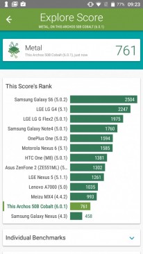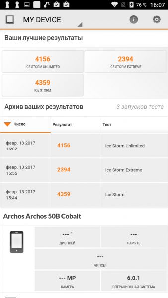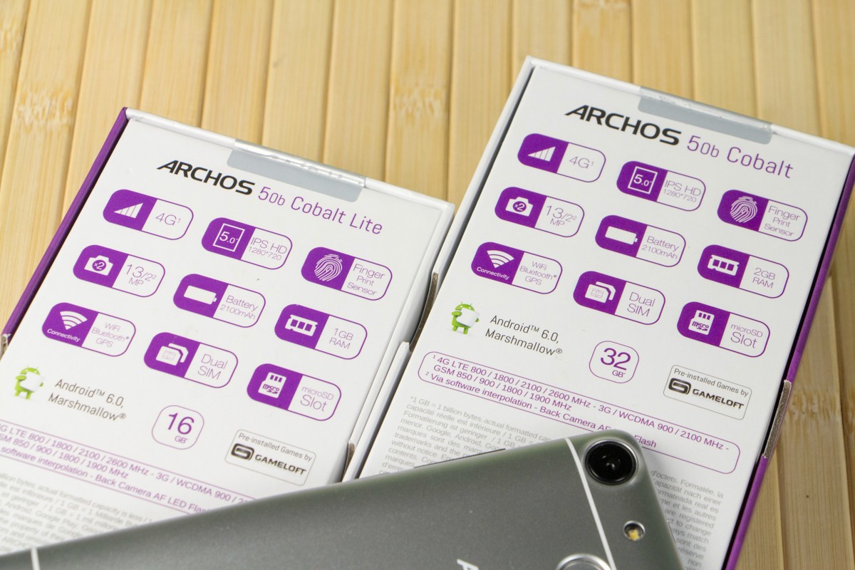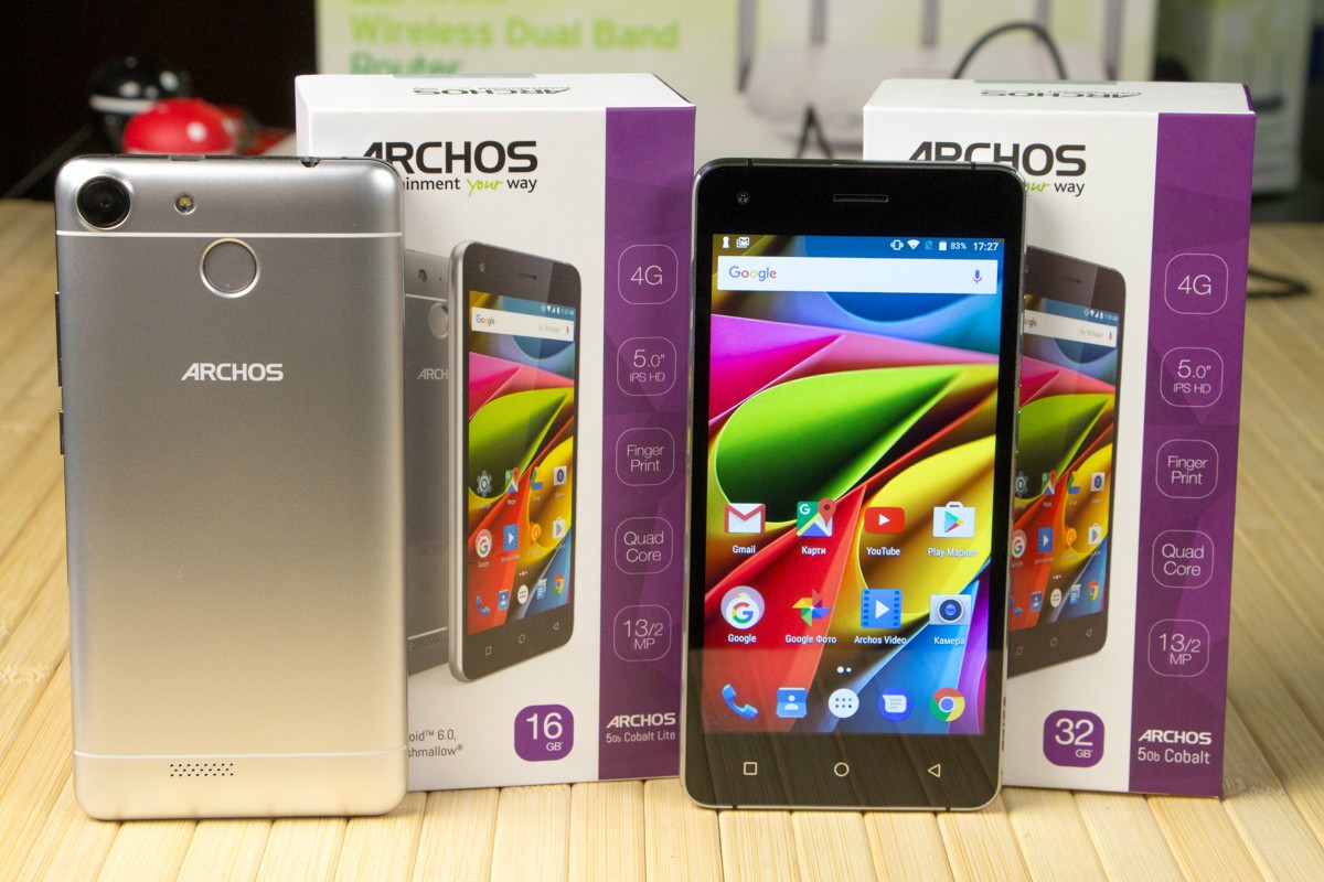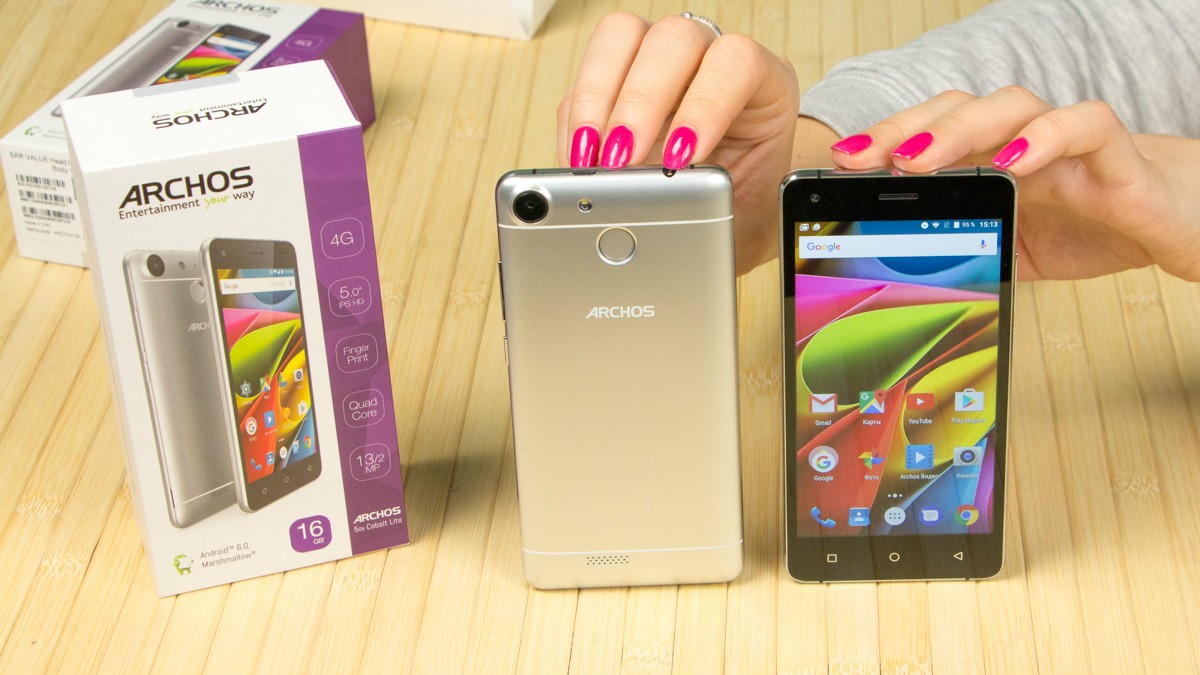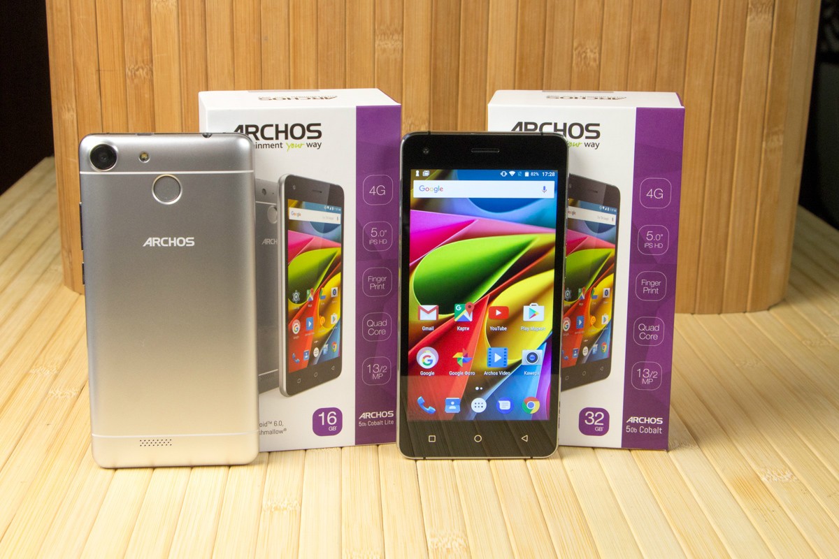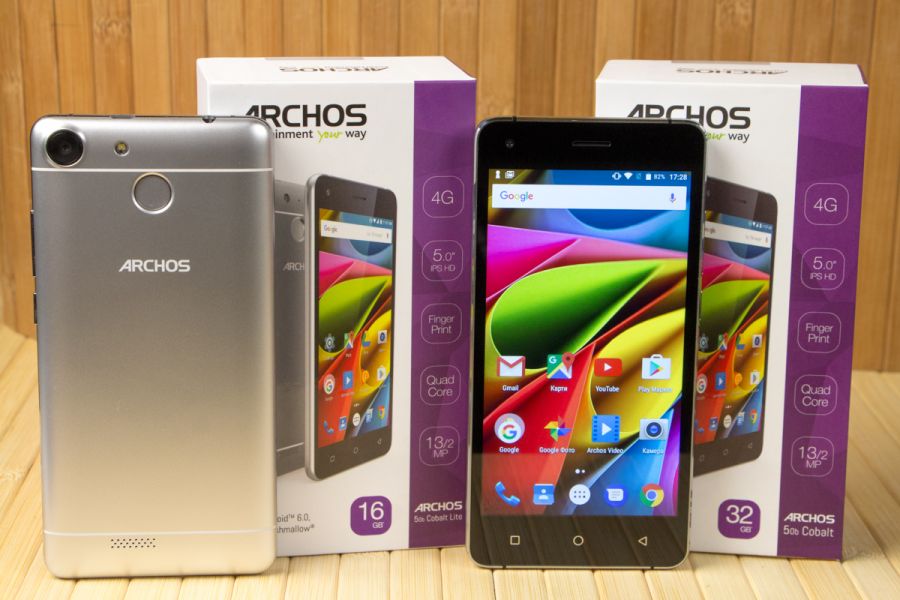 Обзор смартфонов ARCHOS 50b Cobalt и 50b Cobalt Lite!На первый взгляд перед нами братья-близнецы ARCHOS 50b Cobalt и 50b Cobalt Lite: дизайном обоих предусмотрена металлическая рамка, спецификациями 5-дюймовый IPS-экран и 13Мп камера, ну а для защиты данных используется сканер отпечатков пальцев. Однако 25-долларовая разница в стоимости намекает на то, что различия между трубками все же есть. В чем они заключается, расскажем далее в обзоре. Комплект поставкиУкомплектованы ARCHOS 50b Cobalt и 50b Cobalt Lite одинаково. В коробке из плотного картона фирменного бело-фиолетового цвета наряду со смартфоном нашлось место адаптеру питания, кабелю microUSB-USB, руководству пользователя, гарнитуре с вакуумными ушами и даже пленке на экран. Дизайн и функциональные элементыС какой стороны не смотрела на 50b Cobalt и 50b Cobalt Lite внешних различий между ними найти не смогла. Дизайн трубок полностью идентичен, вплоть до расцветки – серебристая. Кстати, чтобы пользователь смотрел на пластик тыльной панели, а видел металл, производитель использовал не только соответствующий данному материалу цвет, но и тонкие белые полосы, уже традиционно прячущие в металлических трубках антенны радиомодулей. Но особенно хороша в дизайне устройств, на мой взгляд, алюминиевая рамка по периметру корпуса с зеркальным алмазным срезом на торцах. По крайней мере, благодаря ей оба гаджета в профиль выглядят интересно и дорого. Справа на ободе обустроены кнопка питания и клавиша регулировки громкости. Сверху - 3.5 мм аудиовыход и порт microUSB, ну а снизу только вывод микрофона. Замечу, пластиковая тыльная панель так плотно прилегает к рамке, что с виду и не скажешь, что смартфоны «разборные». Они не хрустят, и не скрипят при сдавливании, но при этом не являются «unibody», на что намекает и специальная выемка внизу правой «боковушки», предназначенная для снятия задней крышки. Под последней у обоих спрятаны съемный аккумулятор и три отдельных слота – два под microSIM-карты и еще один под карту памяти. По-своему интересна и тыльная панель смартфонов. Кроме объектива 13Мп камеры, светодиодной вспышки и мультимедийного динамика, на ней обустроен дактилоскопический датчик. Лично мне ранее не доводилось видеть столь глубоко утопленного в корпус сканера отпечатков пальцев. Тем не менее, на практике такое обустройство биометрического сенсора оказалось очень даже удобным - случайные нажатия были сведены до нуля. Следящие за сохранностью своих личных данных пользователи, уверена, по достоинству оценят также скорость и точность срабатывания датчика. Он фиксирует до 5 отпечатков и для разблокировки устройства не требует предварительной активации экрана. Кстати, спереди 50b Cobalt и 50b Cobalt Lite не представляют собой ничего необычного: под дисплеем расположены кнопки управления без подсветки, а над ним датчики освещения/приближения, разговорный динамик и объектив 2Мп камеры. Да, благодаря диагонали экрана в 5 дюймов, а также закругленным граням спинки и отсутствию острых углов оба смартфона удобно лежат в ладони, плюс достаточно компактные, за счет чего управление ими возможно даже одной рукой, а пальцы дотягиваются до всех кнопок без необходимости перехвата. Единственное, о чем тут стоит волноваться, - корпус достаточно скользкий и аппарат весьма легко выронить. ДисплейЗащитным стеклом на этот случай ни 50b Cobalt, ни 50b Cobalt Lite, к сожалению, не укомплектова