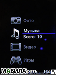 В Sony Ericsson C905 внедрен графически обновленный интерфейс, которым оснащаются все последние устройства компании. Иконки приятны и красивы. Есть четыре темы оформления телефона — все они по-своему привлекательны и интересны. К тому же, построены на флеш-анимации. Одна из тем, а именно dusk setting, даже подчеркивает позиционирование устройства — меню «Cyber-shot» анимировано дополнительным ярким бликом, словно вспышка. Так как это продукт от Sony Ericsson, вы сможете загрузить или создать свои собственные меню в почти неограниченном количестве, в том числе и на флеш с помощью программы Sony Ericsson Themes Creator. Главное меню представляет собой набор из 12 иконок, по которым вы можете перемещаться с помощью джойстика или нажатием на цифровые последовательности. Конечно, есть уже привычный медиацентр, дающий доступ ко всем сохраненным мультимедийным файлам через красивое флеш-меню. Так как в терминале есть встроенный датчик движения, то это позволяет автоматически разворачивать экран в браузере при его перевороте или делать то же самое, но уже при просмотре фотографий. В телефоне есть три игры, которые так или иначе связаны со спортом. Первая из них — настольная логическая игра, которая долгое время считалась игрой королей и аристократов, сочетающая в себе элементы искусства, науки и спорта. Это, конечно же, шахматы (Kasparov Chess). Другие не оставляют времени подумать — известные гонки Need for Speed и хороший мобильный стимулятор Tennis Multiplayer. Выбор игр небольшой, но очень качественный.