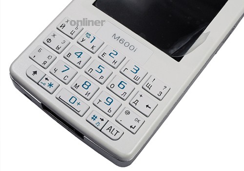 На клавишах не нашлось места для многих важных знаков препинания, они доступны после удержания «Б». Стоит заметить, что при включенном режиме набора альтернативных символов перестают работать ENTER и BACKSPACE. Зато в обычном режиме они работают всегда, не только в текстовых приложениях. ENTER всегда выполняет подтверждающую функцию, а BACKSPACE может стирать последний символ в любом месте, где происходит набор текста или цифр. Вообще, в плане удобства такая клавиатура близка к полноразмерной. Набирать, конечно, приходится двумя пальцами, но сам процесс весьма удобен. Вышеописанные недостатки мешают лишь в единичных случаях, что позволяет с ними мириться. В любом случае, это лучше, чем пытаться попасть по небольшим клавишам полноразмерных QWERTY-клавиатур, устанавливаемых на подобные устройства. Ввод латинских символов с клавиатуры также возможен, но нанести еще один алфавит на небольшие клавиши не получилось из-за банальной нехватки места. Конечно, можно было бы воспользоваться пространством около кнопок, но вендор пошел иным путем. В M600i поддерживается распознавание рукописных латинских символов и знаков препинания. Функция работает великолепно, воспринимает не полученную «закорючку», а способ ее начертания. Таким образом, распознавание работает на достаточно хорошем уровне. Третьим способом ввода является экранная клавиатура, аналогичная КПК. Поддерживаются три раскладки: QWERTY, ЙЦУКЕН и набор спецсимволов.