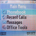 Главное меню в С380 сделано по типу новых моделей от Моторолы (см. фото). Его можно сделать как списком, так и иконками, распределенными по три строки. Первым следует пункт "Телефонная книга". Если записывать данные в память аппарата, то для одного имени можно записать группу, номер, тип ("рабочий", "мобильный", "главный" и т.п.), голосовую метку, быстрый набор, индивидуальный рингтон и картинку (в том числе и фото). Выбрав пункт "Еще" можно задействовать еще одну ячейку телефонной книги и повторить процедуру, таким образом для одного имени можно ввести сколь угодно много данных (естественно, в пределах свободной памяти). Всего память С380 имеет 1000 ячеек. Кстати, все вышесказанное в равной степени можно проделать и для E-mail-адреса. В общем, по сравнению с С350 кроме расширения памяти ничего нового добавлено не было.