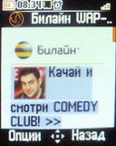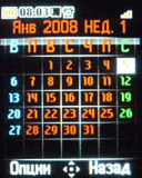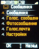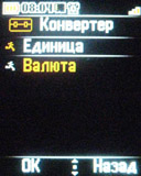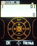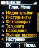 Возможна запись видеороликов. Качество снимков и видео довольно посредственное. МенюОсновное меню состоит из двенадцати пунктов: игры, медиа-альбом, иснтрументы, фотоаппарат, тел. Книга, сообщения, журнал вызовов, настройки, спорт, услуги, медиапроигрыватель, WAP. Отображается меню в виде значков (иконок) с подписями. Навигация по меню осуществляется с помощью 5 позиционного джойстика. Для выбора нужного пункта используется центральная кнопка ввода.