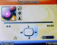 Встроенный мр3-проигрыватель обладает привлекательный дизайном меню приложения. По части настроек это возможность выбора носителя, из памяти которого будет воспроизводиться трек. Кроме того, в настройках проигрывания реализована возможность автосоздания списка, воспроизведения в режиме повтора, а также в случайном порядке плюс фоновая работа проигрывателя и другое.