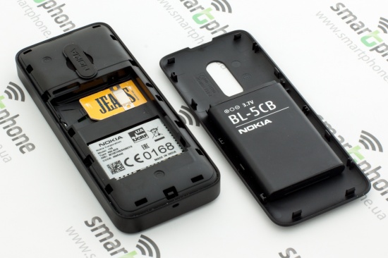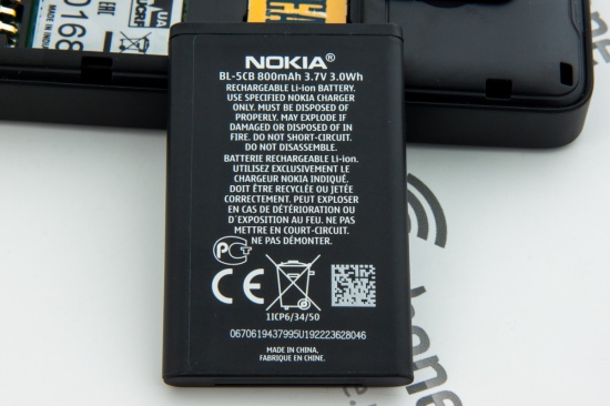 Емкость съемного аккумулятора 800 мАч. Для той аппаратной начинки, которую выбрал производитель, и небольшого дисплея, такой батареи достаточно на неделю, при использовании телефона по назначению не менее 1,5-2 часов в день. Это мы реально проверили в сети украинского мобильного оператора. А вот в режиме ожидания, по заявлению производителя, трубка может продержаться практически месяц.