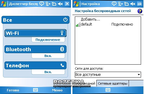 и в дальнейшем его работа нареканий не вызывала. В коммуникаторе установлен Bluetooth 1.2 адаптер с заявленной поддержкой A2DP-профиля, благодаря которому пользователь имеет возможность слушать музыку через беспроводные стереонаушники. К сожалению, эту опцию проверить не удалось, но все базовые функции Bluetooth адаптер выполняет без нареканий, единственное что удручает так это скудность настроек интерфейса.