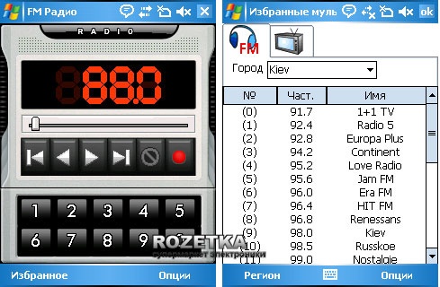 Подводя краткие выводы о работе коммуникационных модулей, закрыв глаза на описанные проблемы, возникшие при тестировании коммуникатора, можно сказать, что в целом устройство работоспособно, и ожидать от него неприятных сюрпризов не стоит. Что касается пожеланий - то пожалуй не хватает поддержки EDGE, хотя с другой стороны Интернет через мобильный телефон по мнению автора - это не совсем Интернет, это скорее дань времени или моде, а тех возможностей, которые предоставляет коммуникатор вполне достаточно, для того чтобы получить или передать почтовое сообщение или для работы Интернет мессенжера. Теперь перейдем к главной и уникальной возможности коммуникатора, к работе приемников FM и ТВНачнем с исследования работы ТВ приемника. Для приема телевизионного сигнала необходимо подключить гарнитуру, которая служит антенной, либо специальную внешнюю антенну, которая поставляется вместе с коммуникатором, она так же вставляется в разъем гарнитуры. Работой ТВ тюнера управляет довольно простенькая утилита, предоставляющая пользователю необходимый минимум необходимых настроек. Эта утилита позволяет переключать каналы, возвращать к просмотру предыдущего канала, вносить каналы в избранный список, регулировать контраст и яркость и переключать звук с наушников на динамик и наоборот. Есть практически все опции которые могут быть востребованы, не хватает, пожалуй, возможности точной настройки, такая опция была бы очень кстати, потому что, откровенно говоря, работа ТВ тюнера не порадовала. Комммуникатор отноительно сносно работает как ТВ приемник в неподвижном состоянии, в движении использовать ТВ приемник не стоит, сигнал очень часто теряется и удовольствие от просмотра сводится к минимуму. Ситуация с FM более менее сносная но не идеальная. Утилита отвечающая за работу FM имеет простенький интерфейс с минимальным количеством настроек, собственно программа управления ТВ и FM тюнером это пожалуй одно и то же приложение имеющее различный интерфейс который выглядит по разному в зависимости от того к какому диапазону частот обращается встроенный приемник, по крайней мере интерфейс в котором пользователь получает доступ к избранным ТВ программам и радиостанциям одинаков и для тв программ и для радиостанций. Качество приема не идеальное но вполне приемлемое, приемником можно пользоваться в движении не испытывая дискомфорта, или огорчения по поводу частых помех. Приятной особенностью является возможность записи радиопередач, Причем, записывать можно как на карту памяти, так и в память устройства.