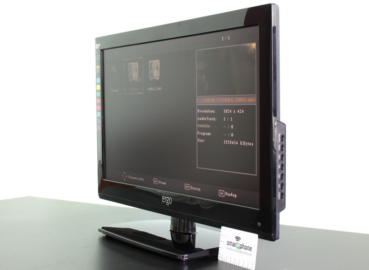 Включив Ergo LE22D20, по настоящему понимаешь, что, в сущности, подразумевал производитель, заявляя о встроенном медиапроигрывателе в этом телевизоре. Речь, прежде всего, идет о том, что пользователь может воспроизводить весь графический контент, а также текст даже с самого простого USB-накопителя. Все очень просто – в систему изначально зашита специальная программа, при помощи которой с носителя считывается необходимая информация. Причем нет необходимости, как-то ее сортировать по папкам, конвертировать и выполнять прочие дополнительные операции – все в разы проще и легче – достаточно только записать в память носителя информацию, а затем вставить в USB-порт телевизора.
