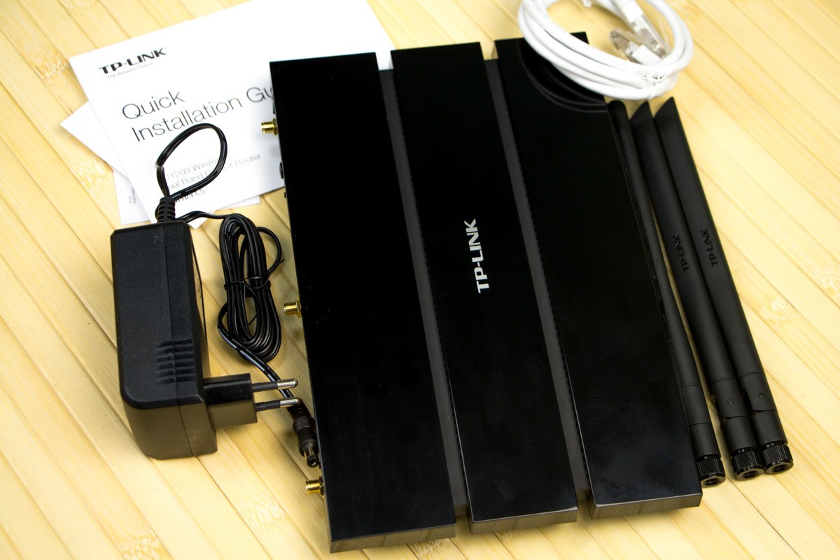 Внешний видArcher C5 как две капли воды похож на TP-LINK TL-WDR3600. Тот же строгий черный пластик и прямые линии корпуса, отличная сборка и удобное расположение портов и элементов управления. Сказать, что эта модель не стильная или некрасивая никак нельзя. Лучше уже промолчать, а не то его владелец задействует не только слова, чтобы объяснить, почему он выбрал именно Archer C5. И причина кроется, возможно, в том, что если перенести осмысление внешнего вида тестируемого устройства на фантастику, то лично я заметил в нем схожесть с Дартом Вейдером. Где-то глубоко в душе этот персонаж, хоть и был добрый, но на деле и внешне - лаконично ужасен. При этом другие модели от того же TP-LINK, например, тестируемый нами летом TP-LINK TL-WR841N - это обычные воины-клоны. Хотя нет, «старшеньких» Archer C8 и С9 из уважения к фильму и позиционированию я бы все же отнес к касте имперских штурмовиков. Но это субъективное мнение автора этого текста, навеянное выходом на большие экраны новой трилогии из серии Star Wars. И мы все же вернемся к обсуждению TP-LINK Archer C5 и его возможностям в реальном мире. Преимущества над ранее тестируемыми моделями TP-LINKЕсли говорим о преимуществах Archer C5 над ранее тестируемыми нами моделями, включая TL-WDR3600, то логично, что переходим к описанию новых возможностей стандарта 802.11ac. Во-первых, это большая спектральная полоса пропускания стандарта и каналы с увеличенной шириной, а значит данные могут передаваться быстрее. Во-вторых, увеличено количество потоков, а это дает возможность устанавливать больше антенн, что увеличит скорость соединения для передачи и приема данных. Выше перечислены лишь две особенности стандарта 802.11ac. В то же время за счет более продвинутой модуляции, функции формирования луча и алгоритмов кодирования дополнительно увеличивается эффективность соединения. Но эта часть скрыта от глаз пользователей и рекламных надписей на корпусе, она реализована программно на внутреннем «железе». В роутере Archer С5 за аппаратную составляющую отвечает платформа Qualcomm Atheros QCA9558 в паре с QCA9880-BR4A. Она обеспечивает передачу данных на частотах 2,4 ГГц и 5 ГГц и выдает совокупную пропускную способность в 1,2 Гбит. При этом на диапазон 5 ГГц приходится скорость в 867 Мбит/с, а на 2,4 ГГц - 300 Мбит/с. Пользователь вправе сам выбрать, к какому каналу подключаться. Три съемные антенны при этом обеспечат солидное покрытие даже в условиях непрямой видимости роутера в многокомнатной квартире или офисе. В тестируемый маршрутизатор встроены гигабитные порт, а значит внутрисетевые коммуникации можно вывести на новый уровень скорости и значительно уменьшить затраты времени при передаче больших файлов. Аналогично модели TL-WDR3600 в Archer C5 два встроенных USB порта, которые можно использовать для совместного доступа по локальной сети или через FTP к мультимедийным файлам на подключенном флеш- или HDD-носителе, принтеру и другим устройствам. Не обделен Archer C5 также функцией гостевой сети, родительским контролем и мастером быстрой настройки. Встроенная поддержка IPv6 - нового поколения протокола Интернет, обязательно пригодится для работы с сервисами и сайтами в постоянно растущей и развивающейся сети. К слову, у модели Acrcher C5 с немного другой аппаратной начинкой от Broadcom будет работать и функция управления маршрутизатором с помощью TP-LINK Tether. Это мобильное приложение для Android или iOS с удобным пользо