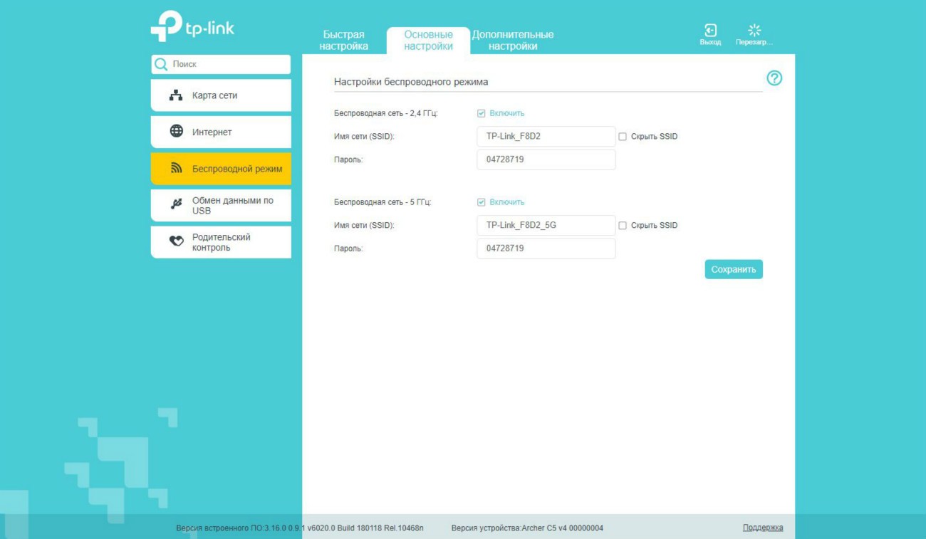 Multi-SSID Позволяет использовать несколько беспроводных сетей с одной точки доступа. У каждой из них свои настройки безопасности и видимости. Зачем это нужно? Самый очевидный ответ - выдать клиентам доступ в интернет, изолированный от локальной сети, причем без покупки дополнительного оборудования. Чаще всего это называют гостевой сетью. Настройка Archer C5 V4 возможна через привычный веб-интерфейс, который аналогичен другим роутерам TP-Link. Внутри него открыт доступ ко всем параметрам работы проводных и беспроводных сетей, приоритезации трафика и другим. Несколько скриншотов панели можно увидеть ниже. Помимо онлайн настройки владельцы смартфонов и планшетов на iOS и Android могут подстроить под себя маршрутизатор TP-Link Archer C5 V4 через приложение Tether. Оно бесплатное. Его возможности мы детально рассматривали в обзоре роутера TP-Link TL-WR945N, отличительной особенностью которого стал металлический корпус. Тест Три недели маршрутизатор отработал в реальных условиях: 14 дней в квартире на 65 квадратов с 3-мя комнатами в панельном доме и 7 дней в доме на 2 этажа (90 квадратов) и 4-мя комнатами с деревянным перекрытием и широким лестничным проемом. Источник сигнала был размещен в центре этих локаций. Устройство обеспечило достаточное покрытия Wi-Fi по всей площади помещений. В одной комнате с роутером по беспроводному каналу подключались гаджеты, которым нужен был быстрый доступ к сети без задержек. Это касается связки ТВ+ смарт-ТВ приставка и ноутбука с игрушками онлайн. Чем дальше от источника сигнала, тем рациональнее было переходить на сеть с частотой 2,4 ГГц, так как она покрывала стабильным сигналом большую часть помещений. Найти угла, где бы интернет отсутствовал вообще, не получилось. Тесты со скачиванием файлов из сети показали, что реальная скорость при проводном подключении находится на уровне 950-970 Мбит/с. Это касается WAN-LAN и LAN-LAN, что стоит считать хорошим показателем. Главное, чтобы сетевые карты на ноутбуке или стационарном ПК поддерживали такую скорость. При приеме данных через Wi-Fi на 2,4 ГГц получилось добиться средней скорости в 180 Мбит/с. Если выбрать сеть на 5 ГГц, то цифры поднимались до 400-420 Мбит/с. А это почти половина от заявленной производителем. Конкуренты