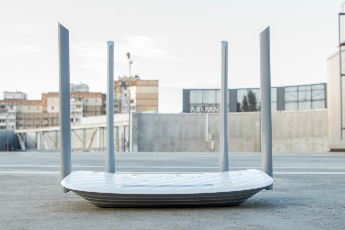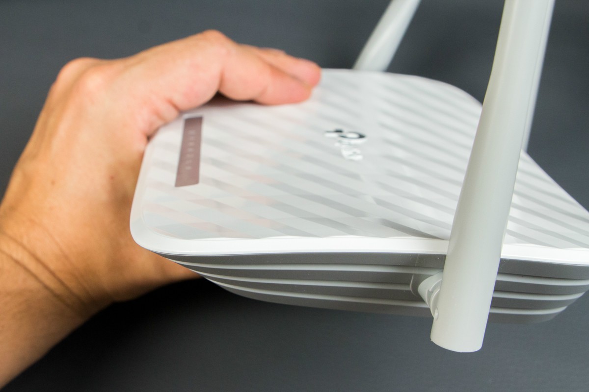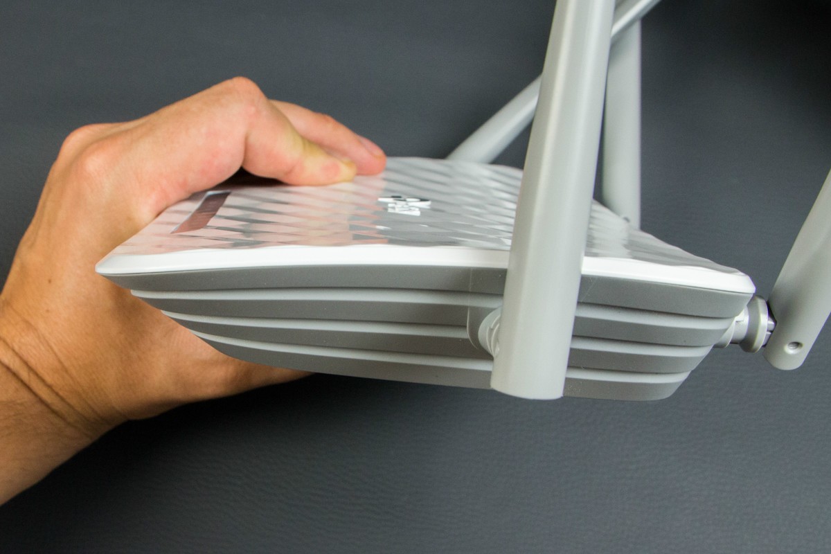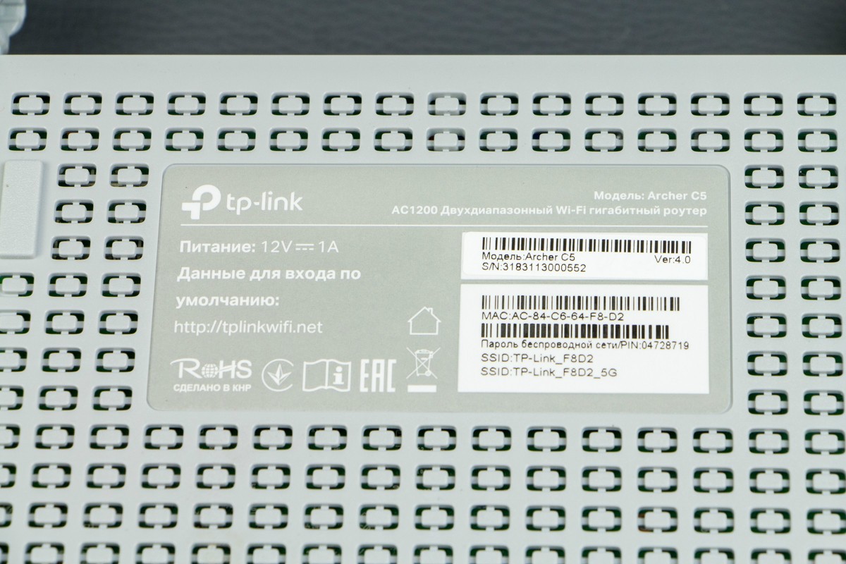 Обзор TP-Link Archer C5 V4: гигабитный роутер c двухдиапазонным Wi-FiСтандартом 802.11 ac уже никого не удивить. Чипсеты с ним массово используют в умных телевизорах, смарт-ТВ приставках, смартфонах и ноутбуках. Запустили этот процесс и активно поддерживают производители маршрутизаторов. Новинка TP-Link Archer C5 V4 тому подтверждение, так как устройство при своем демократичном ценнике предлагает скорость до 1,2 Гбит/с по беспроводному каналу и 1 Гбит/с по локальному, а также большую площадь покрытия 4-мя внешними антеннами. Подробности узнаете из обзора. Комплект поставки TP-Link Archer C5 V4 упакован в коробку из плотного картона, внутри которой разместили роутер с 4 несъемными антеннами (мощность передатчика < 20 дБм), блок питания на 12В/1А, сетевой кабель желтого цвета и документацию. Сразу отметим, что антенны на корпусе закреплены основательно, падать из вертикального положения не будут. Их мощности хватает, чтобы покрыть сигналом приемлемого уровня 2/3-комнатную квартиру и небольшой дом. В любом случае, большую роль будет играть место расположения роутера и планировка здания. Дизайн и корпус Внешность TP-Link C5 V4 практически идентична модели Archer C60, которую мы обозревали в прошлом году. Основное отличие – отсутствие в последней USB входа на панели с разъемами. Устройство получилось красивым и это без скромности подчеркивает верхняя панель глянцевого белого цвета с ромбовидной текстурой. На таком покрытии не видно ни пыли, ни царапин. Расположение базовых элементов конструкции «классическое» для маршрутизаторов. Спереди предусмотрели блок статусных индикаторов с салатовой подсветкой, сверху - логотип бренда, снизу – решетка-панель для вентиляции с небольшими ножками.
