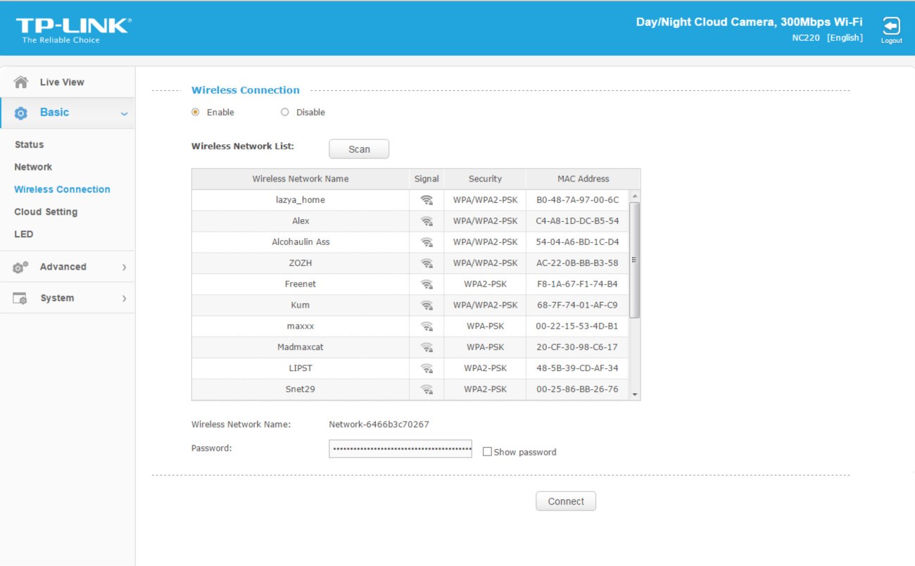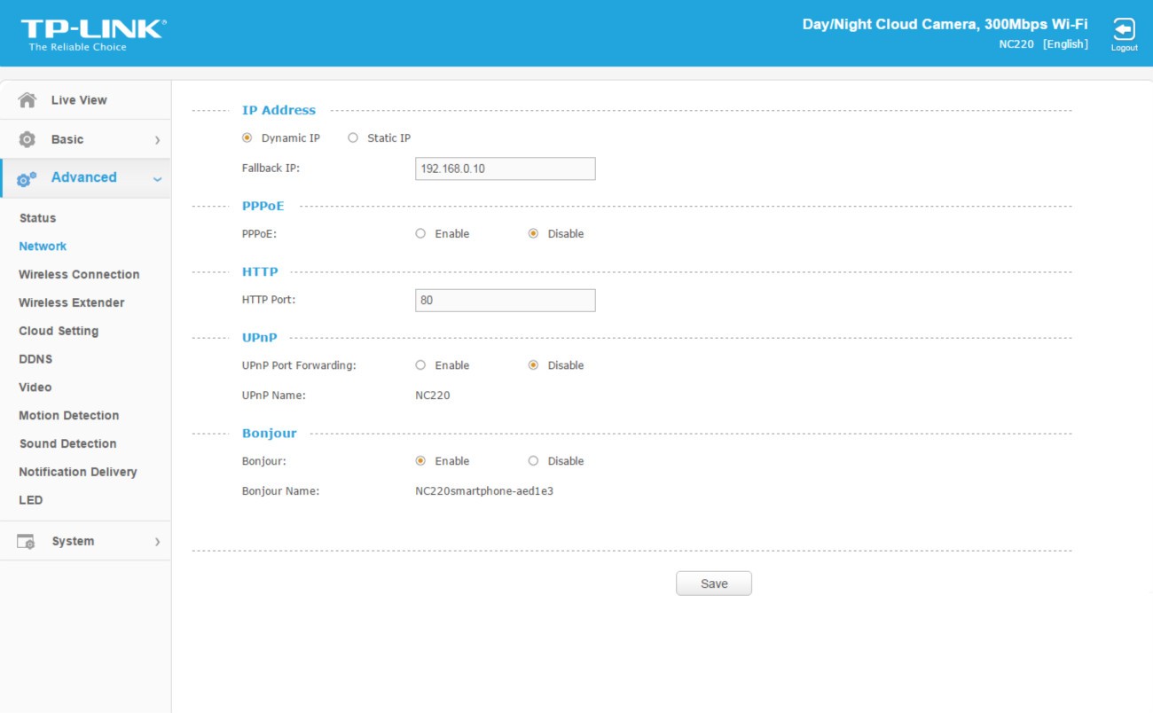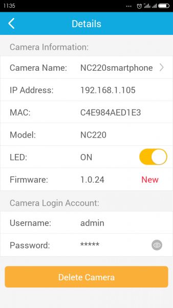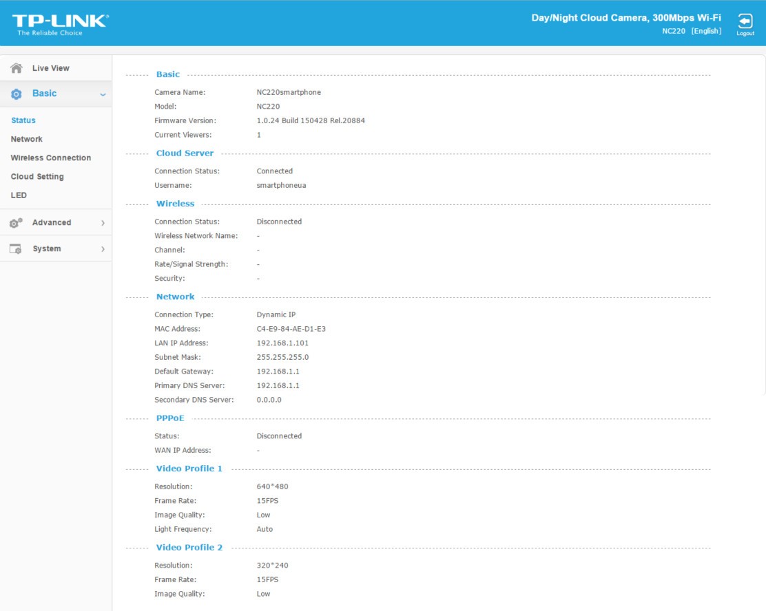 Отмечу, что комплектом поставки предусмотрены блок питания на 9В, кабель-удлинитель и двухстороннее крепление на скотче. Набор минимален, но большего и не нужно. Главное, что еще есть инструкция по быстрой настройке. Вот к ней и перейдем. Брошюра пригодиться для следующего. 1. Подключаемся к камере со смартфона. Для начала определим требования. У Вас должно быть устройство с iOS 6.0 и выше или с Android в версии не ниже 2.3. Следующим шагом фотографируем QR код в инструкции, который перебрасывает на скачивание и установку приложения tpCamera. Во-первых, через эту программу можно локально (из этой же сети Wi-Fi) зайти на камеру и сделать фото, записать ролик, выставить параметры записи видео и выбрать режим съемки (днем, ночью или автоматический выбор). Интерфейс позволяет перейти в полноэкранный режим. Зумируется картинка соответствующим движением пальцев. Во-вторых, в отдельной закладке можно просмотреть отснятый материал и проверить наличие обновления для tpCamera. Если зарегистрироваться в системе, доступ к камере получаем удаленно. 2. Подключаемся к камере с компьютера/ноутбука. Все выше перечисленные действия по работе со смартфоном можно делать и напрямую с компьютера. Для этого нужно только скачать по указанной ссылке программу для начальной установки и регистрации камеры для облачного доступа. После этого в любое время на tplinkcloud.com можно зайти и смотреть видео. Все основные настройки по части качества съемки и параметров информирования при обнаружении движения или посторонних звуков можно выполнить только, подключившись к камере локально через веб-интерфейс. С перечнем всех настроек можно ознакомиться на скриншотах ниже. Установка и корпусДизайн камеры предрасполагает к тому, чтобы не скрывать ее от глаз посторонних. Честно признаюсь - она красивая внешне и несколько дней я ее с удовольствием продержал у себя на столе. Подставка уверенно удерживает NC220 на ровной поверхности и за счет скрытых в ножке креплений может быть двумя шурупами зафиксирована на потолке или стене. Корпус пластиковый и крепится на подножке через шаровое крепление. Эта часть механизма выполнена из металла, убеждает в надежности и долговечности всего устройства. На тыльной стороне камеры в верхней части находится разъем для подключения питания и Ethernet порт. Немного ниже кнопка WPS/Reset и технические отверстия для отвода тепла. С фронтальной стороны заметный продолговатый индикатор (его можно отключить из мобильного приложния), микрофон, датчик освещения и, конечно же, объектив камеры. Он выделен не только выступающей подставкой, но и контрастным черным цветом вокруг. Усиление сигналаИнтересным дополнением со стороны производителя в TP-LINK Cloud Camera NC220 стала встроенная функция усилителя беспроводного сигнала уже существующей сети. На практике это гарантирует улучшения качества приема и передачи данных для других мобильных устройств, которые будут подключаться в непосредственной близости от камеры. ВыводыОпыт реального использования TP-LINK Cloud NC220 показал стабильную и надежную работу Wi-Fi камеры в режиме обеспечения потоковой трансляции из нашего офиса. Немаловажно отметить и возможность удаленного просмотра видео в реальном времени у себя дома или в офисе из любого уголка мира, где есть Интернет. Благодаря простоте настройки и удобному мобильному интерфейсу это уст