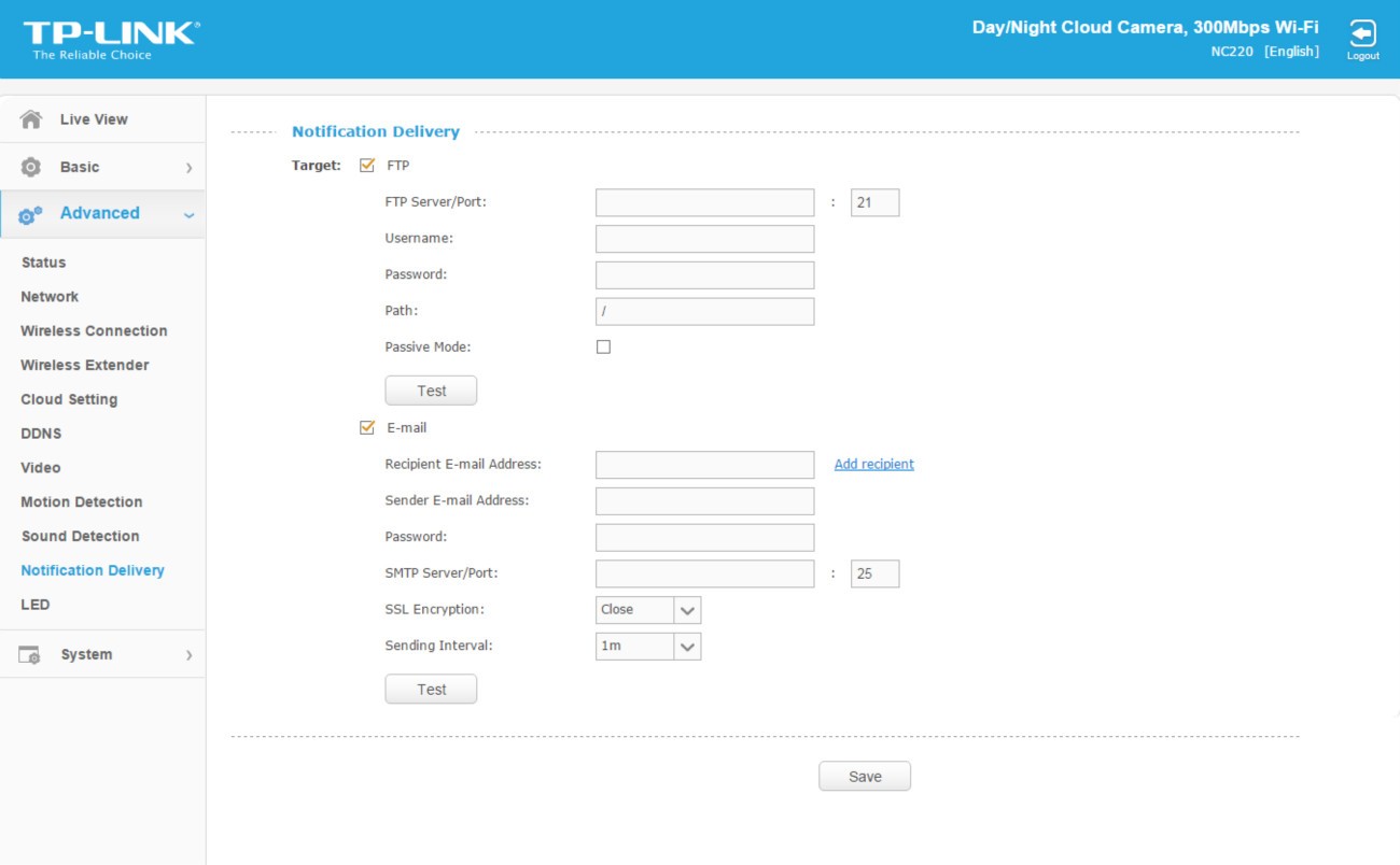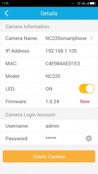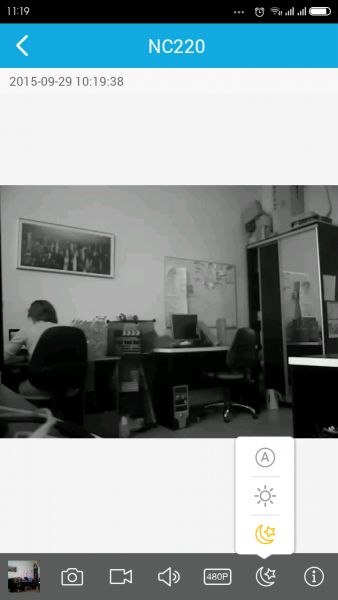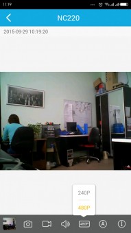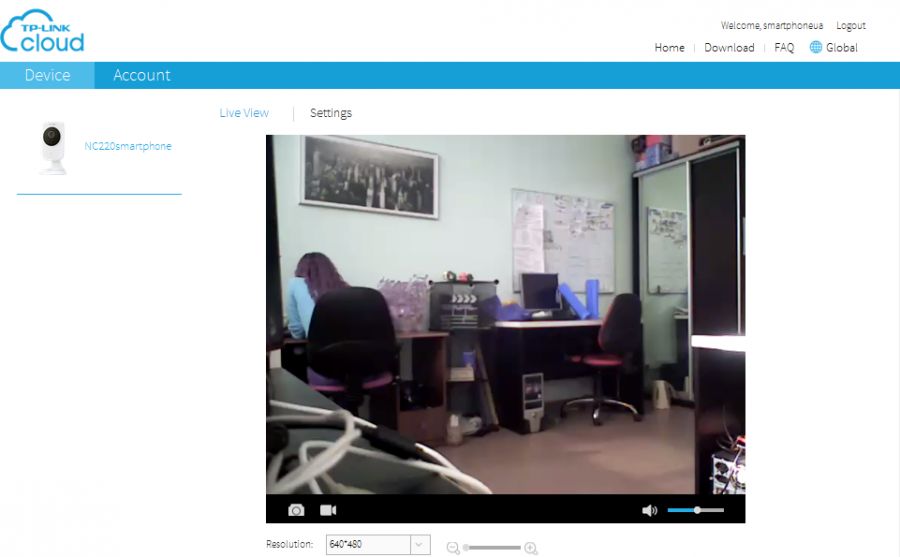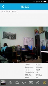 Предназначение любой камеры - видеонаблюдение и запись отснятого материала. У TP-LINK Cloud Camera NC220 эта функция обязательна. Видео записывается 0,3 Мпикс. высокочувствительным CMOS-сенсором в разрешении 640 х 480 с частотой 20 кадров/с. Угол обзора - 64°. Картинку можно увеличить с использованием 4х кратного зума. Сразу же предлагаем оценить качество записи. Примеры фото: снимок 1, снимок 2. Исходя из стоимости в $30-35, устройство отрабатывает все, что за него заплачено. Лица распознать можно, в ночное время при сильном освещении картинка также хорошая. Задержек в передаче видеосигнала нет. Технически камера позволяет передавать данные на скорости до 300 Мбит/с. Выложенное видео, как и остальные, отснятые нами, сжимается в MJPEG и готово для передачи даже на каналах связи с низкой пропускной способностью.