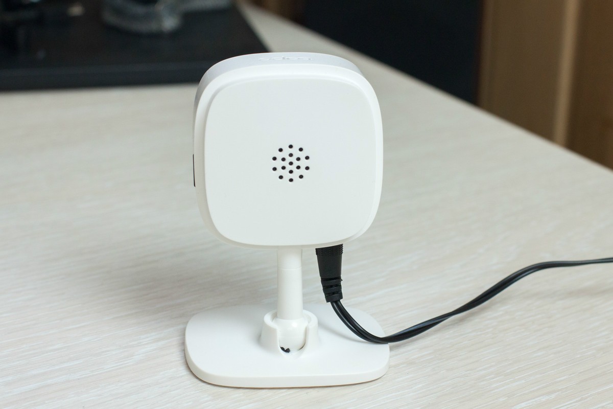 Блок с камерой и ножкой крепится через шаровое крепление к основе. Механизм не позволяет вращать устройство на 360 градусов, но в большинстве случаем этого и не нужно. При желании камеру можете разместить на потолке, а в приложении перевернуть картинку. Динамик на тыльной панели. Он звучит громко. Сборка на высоком уровне, что и ожидалось от TP-Link. Возможности камеры и приложения TP-Link Tapo Камера Tapo C100 управляется только с приложения. Интерфейс программы понятный, неопытный пользователь с первого раза сможет пройти весь путь от включения Wi-Fi камеры в розетку, до настройки качества записи и съемки первой фотографии. У меня это заняло 3 минуты. Три недели теста подтвердили стабильную работы пары камера-программа. Приложение TP-Link Tapo можно установить на Android и iOS смартфоны. Через него: