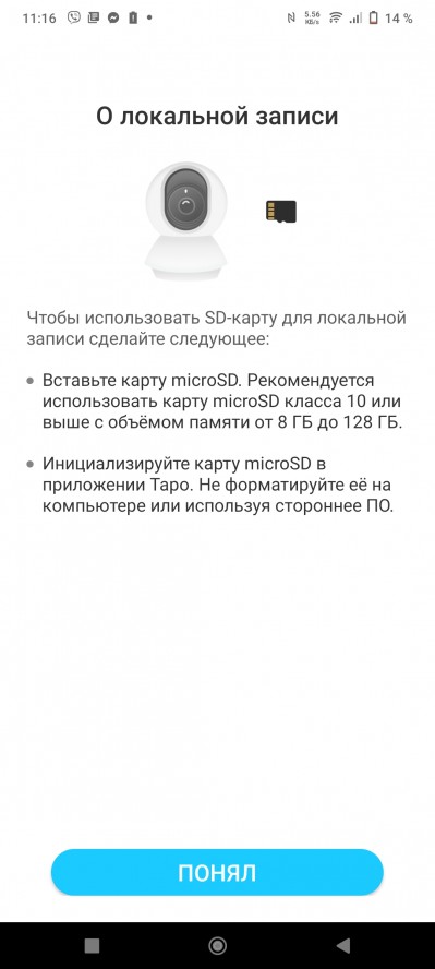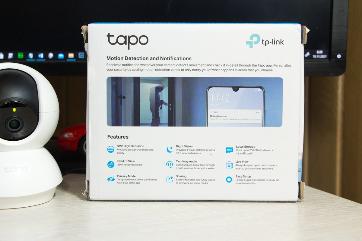 Обзор TP-Link Tapo C210: бюджетная камера видеонаблюдения для дня и ночиTP-Link Tapo C210 – это камера для использования внутри помещений, у которой есть моторизованная камера, встроенный микрофон, динамик, возможность записи в 2K разрешении, а также удобное приложение для управления и настройки. Подробности в обзоре. Дизайн и Корпус TP-Link Tapo C210 - устройство в корпусе округлой формы белого цвета. Черным выделен только блок с камерой, который может менять свое положение по вертикали. Слот для карты MicroSD и кнопка Reset скрыты, доступ к ним открывается только если перевести обзор камеры в самое верхнее положение. Поддерживаются накопители до 256 ГБ. Устройство компактное и легкое. Корпус из пластика. Верхняя часть корпуса над местом подключения питания вращает модуль с камерой в горизонтальной плоскости. Микрофон размещен под оптикой, а динамик на противоположной стороне. Яркий LED индикатор над окошком камеры можно отключить через приложение. Качество сборки хорошее. Защита по стандартам IP не предусмотрена, так что использовать устройство можно только в помещении. Пользователь может установить камеру не только на ровной поверхности, но и закрепить ее на стене. На нижней части корпуса – 3 прорезиненных ножки. С комплектом поставки покупатель получает не только адаптер питания, но и аксессуары для монтажа. Для справки, длина кабеля 5 м. Подключение Tapo C210 – камера с поддержкой Wi-Fi на частоте 2.4 ГГц. Только после подключения к беспроводной сети вы сможете удаленно просматривать контент онлайн и архивные видеоматериалы с накопителя в приложении Tapo. На скриншотах ниже видно весь процесс подключения, он не вызовет затруднений даже у тех, кто впервые подключает такую технику. Установка занимает несколько минут. Возможности Помимо того, что камера может снимать, на программном уровне ее дополнили функцией тревоги при обнаружении движения. Можете включать ее, когда уходите на работу или уезжаете в отпуск. Задержка в передаче видео около 2 секунд. Максимальный формат записи видео - 2304x1296 15 кадров/с. В настройках можно переключиться на разрешение 1080p и 720p. Ниже пример записи. Сенсор 3 Мпикс. Если сравнить с контентом, который снимается в FullHD, то на видео получаем больше детализации. Жертвуем только одним - размером файлов. Примеры фото: Ночная съемка понравилась, камера добивает на 7-8 метров. Переключение в режим инфракрасной подсветки занимает пару секунд. В этом режиме картинка черно-белая. Приложение Tapo Ниже перечисляю список основных возможностей, которые дает программа для управления камерой TP-Link Tapo C210. Приложение Tapo для Android и iOS позволяет: