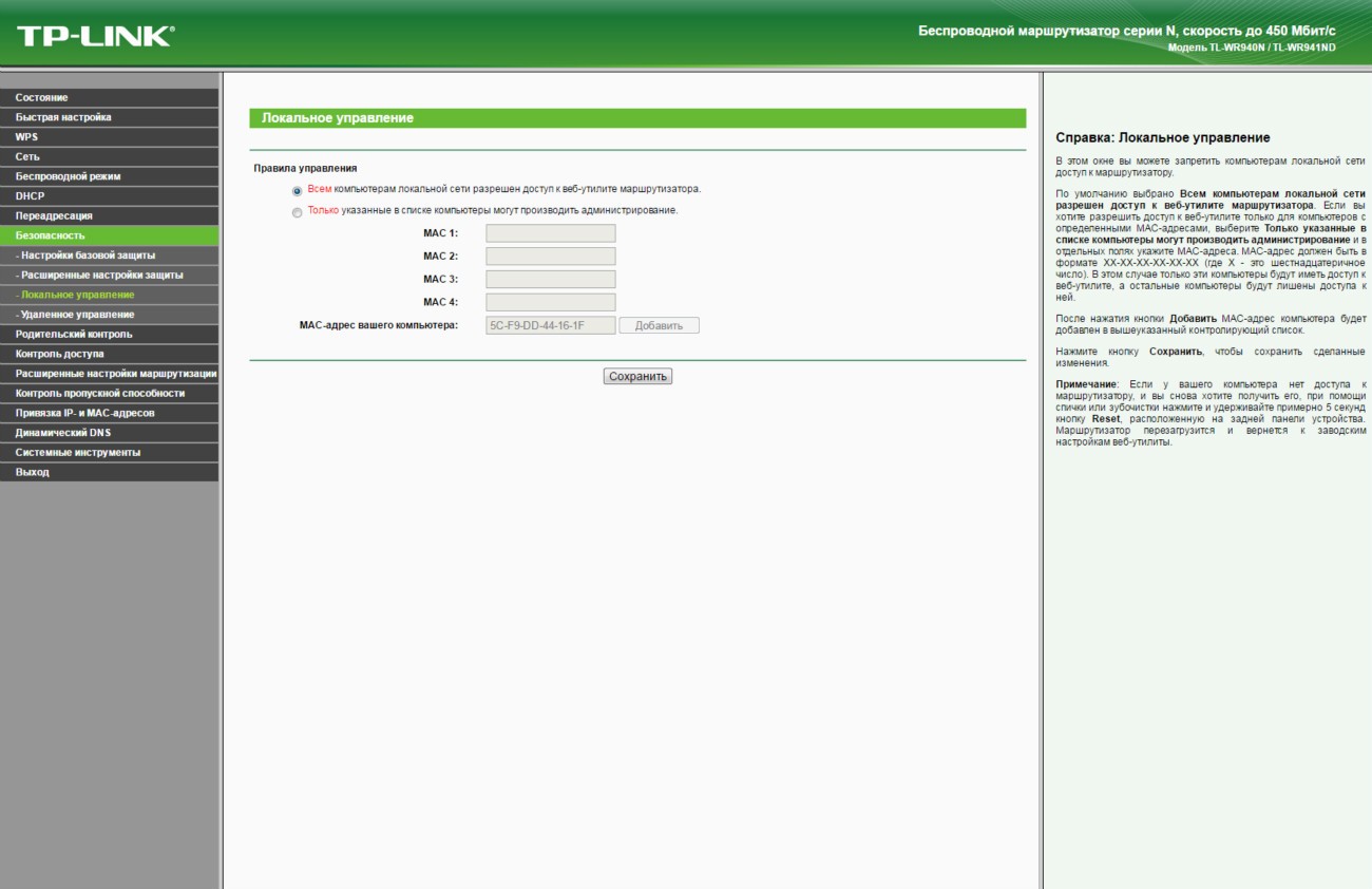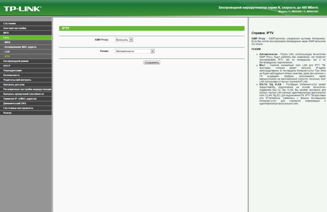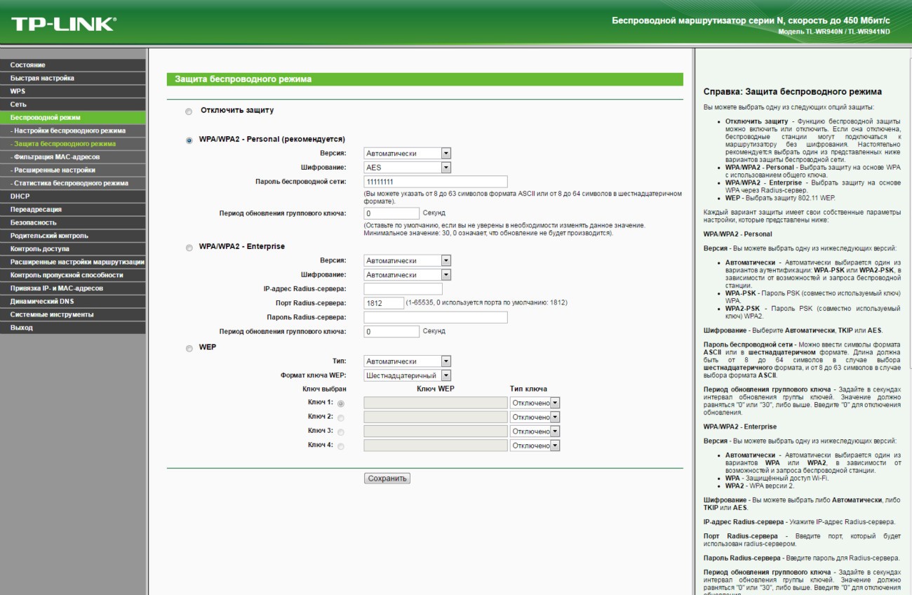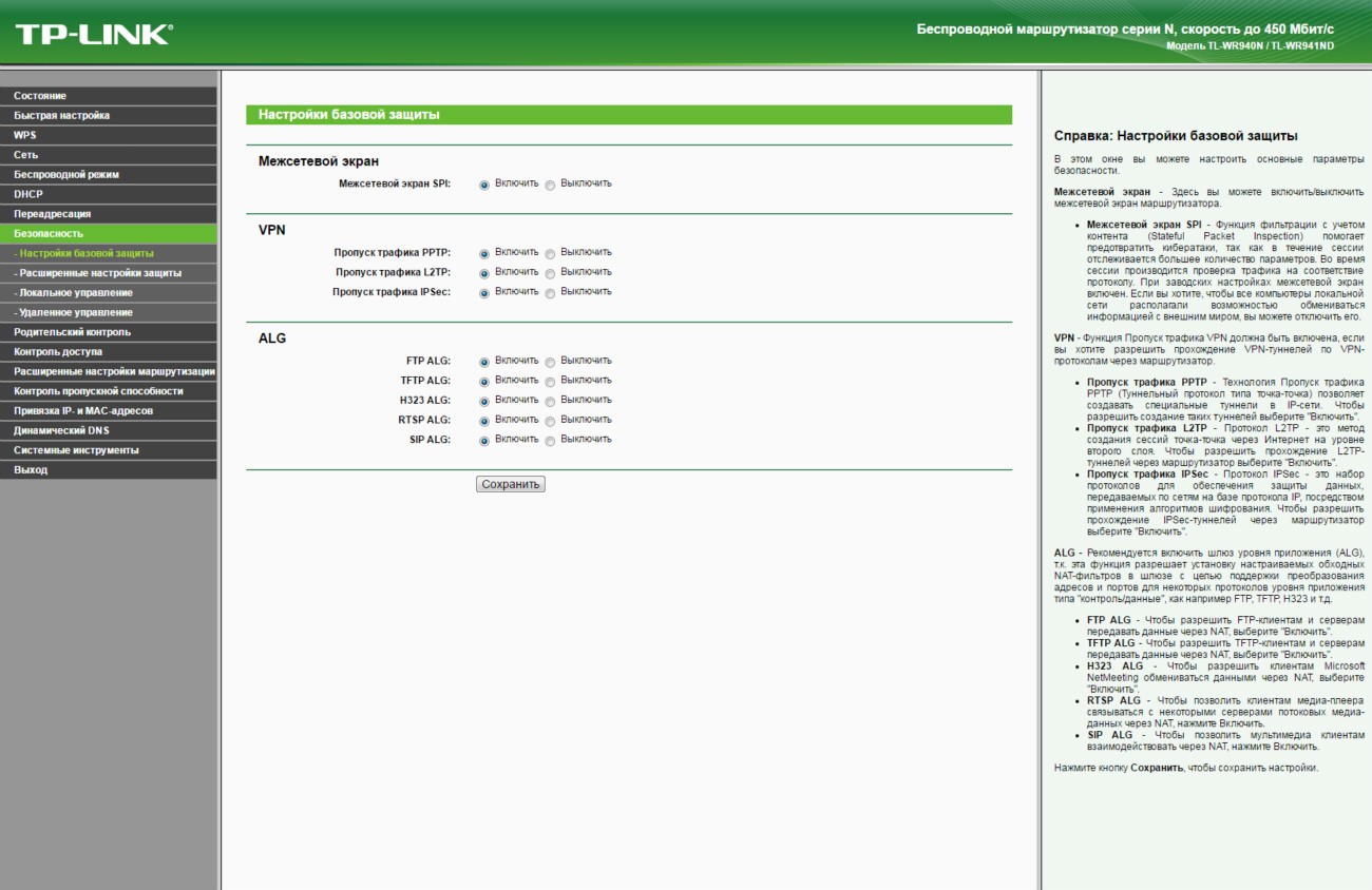 Обзор TP-Link TL-WR940N - беспроводная передача данных на скорости до 450 Мбит/сДаже на устаревшем оборудовании, которое поддерживает только стандарт Wi-Fi 802.11 b/g/n, можно добиться скорости беспроводной передачи данных между устройствами в 450 Мбит/с. И поможет реализовать данный сценарий маршрутизатор TP-Link TL-WR940N. Больше информации об этом роутере с ценником в 799 грн далее в обзоре. На тест к нам попало устройство в версии TL-WR940N Ver. 3.0. Аналог по названию, но не по начинке также продается, но эта модель лишена приставки Ver. 3.0, выглядит по-другому и фактически утратила свою актуальность. Ей на смену пришла достойная замена с увеличенной до 450 Мбит/с скоростью передачи данных в беспроводной сети. В комплекте поставки TL-WR940N производитель предусмотрел все необходимое для быстрого начала работы. Здесь есть Ethernet кабель, адаптер питания, руководство по быстрой настройке и диск с мастером установки и драйверами. Так что проблем с настройкой маршрутизатора даже у неподготовленного пользователя не будет. Но об особенностях интерфейса позже. Обсудим корпус. Дизайн основан на комбинации черного пластика в матовом и глянцевом исполнении. Вся верхняя крышка усеяна ромбовидной текстурой выпуклой формы. Отдельных элементов в сборке не много, так что можно назвать ее отменной. Упрекнуть производителя действительно не в чем. На верхней крышке со стильным узором ярко блестит полированный логотип бренда. Сюда же для удобства пользователя вынесены 8 индикаторов. По их подсвечивающимся синим пиктограммам без объяснения понятно, что и как происходит в работе в данный момент. Данные передаются и принимаются тремя всенаправленными антеннами. Программно используется технология 3х3 MIMO, которой производитель добивается не только стабильности, но и высокой скорости - до 450 Мбис/с. Эта цифра для маршрутизатора с поддержкой технологии Wi-Fi стандарта 802.11 b/g/n значительная, так что даже в том случае, если инфраструктура не позволяет быстро перейти на стандарт 802.11 ac, а данные критичны и важны, то для одновременной работы с несколькими подключенными клиентами аналог TP-Link TL-WR940N будет найти сложно. Подключиться к маршрутизатору можно классическим методом - через полученный или указанный вами в настройках пароль. Ну или более просто - нажав кнопку WPS на тыльной стороне устройства и виртуальную или физическую на подключаемом. Все порты TP-Link TL-WR940N поддерживают подключение на скорости 10/100 Мбит/с. В пару к одному WAN порту идет 4 LAN порта. Эта модель ограничивает покупателя внешним источником в 100 Мбит/с, однако в данном ценовом сегменте это допустимо. Кроме того, производитель сообщает о наличии технологии WDS, а значит возможности расширения беспроводной сети за счет подключения новых передающих или ретранслирующих устройств. То есть данный маршрутизатор может стать одним из 2-х, 3-х или 10 роутеров, которые обеспечивают стабильный проводной/беспроводной интернет и локальную связь в пределах нужной вам территории. Для справки, доступна возможность настройки трафика для каждого потребителя посредством IP QoS. Программно поддерживается: динамический IP адрес (DHCP), работа со статическим IP адресом, PPPoE, PPTP/L2TP. Выбор шифрования данных стандартный: WEP, WPA/WPA2, WPA-PSK/WPA2-PSK. Пользователь сам может ограничивать MAC адреса, внося их в черный список. Ниже в галерее собраны основные скриншоты интерфейса разд