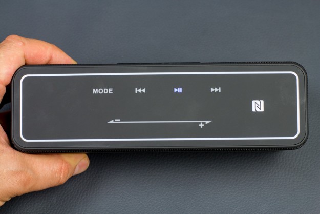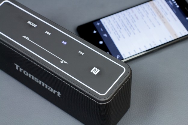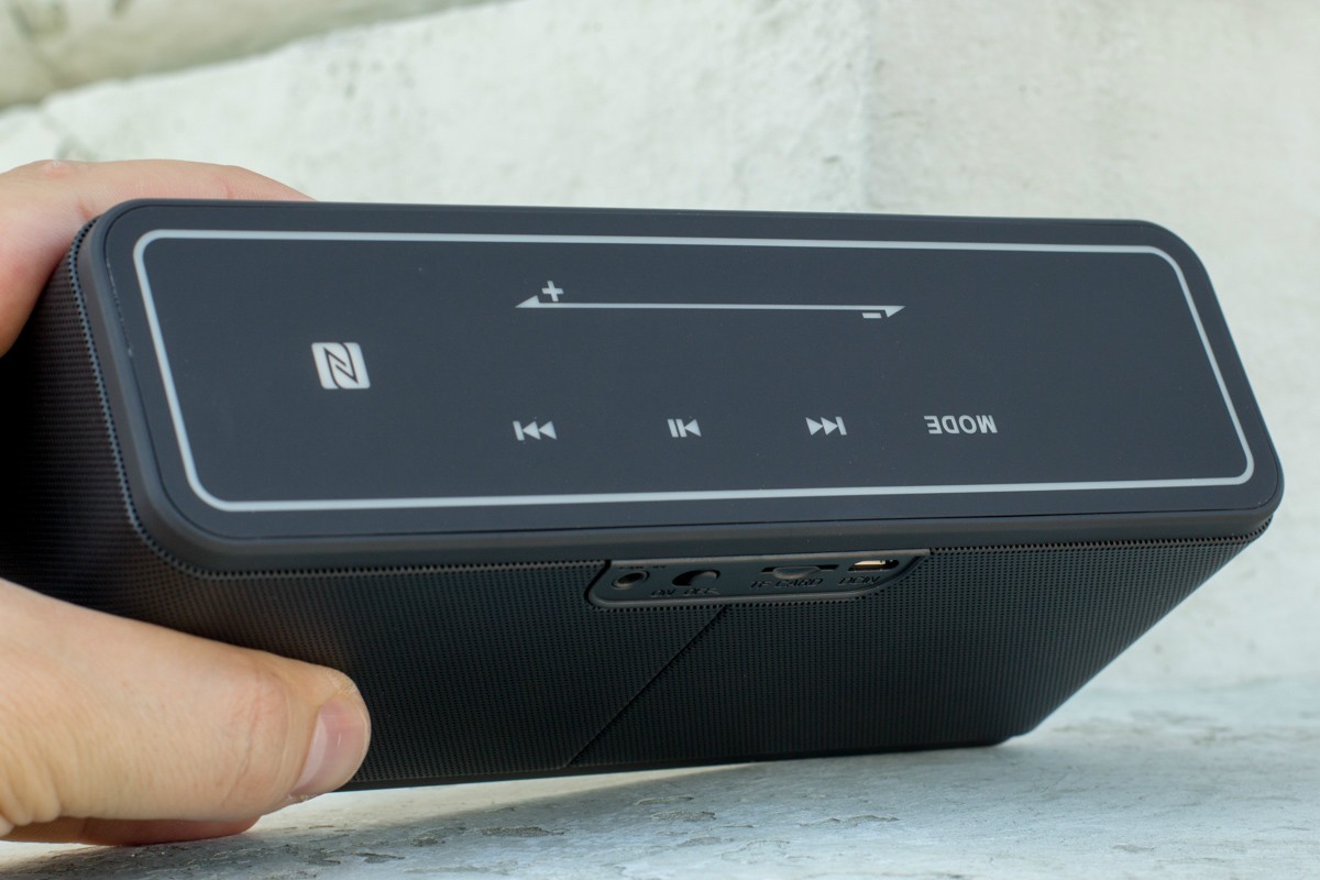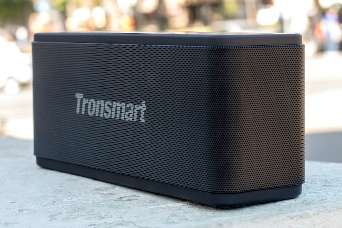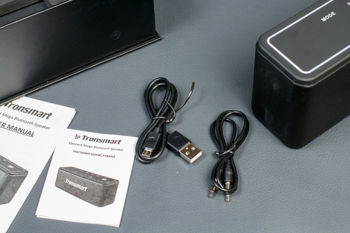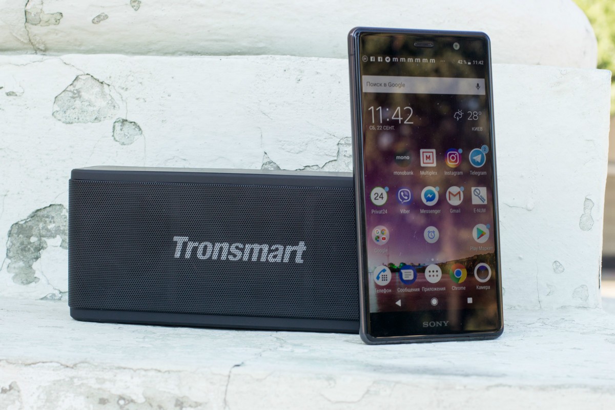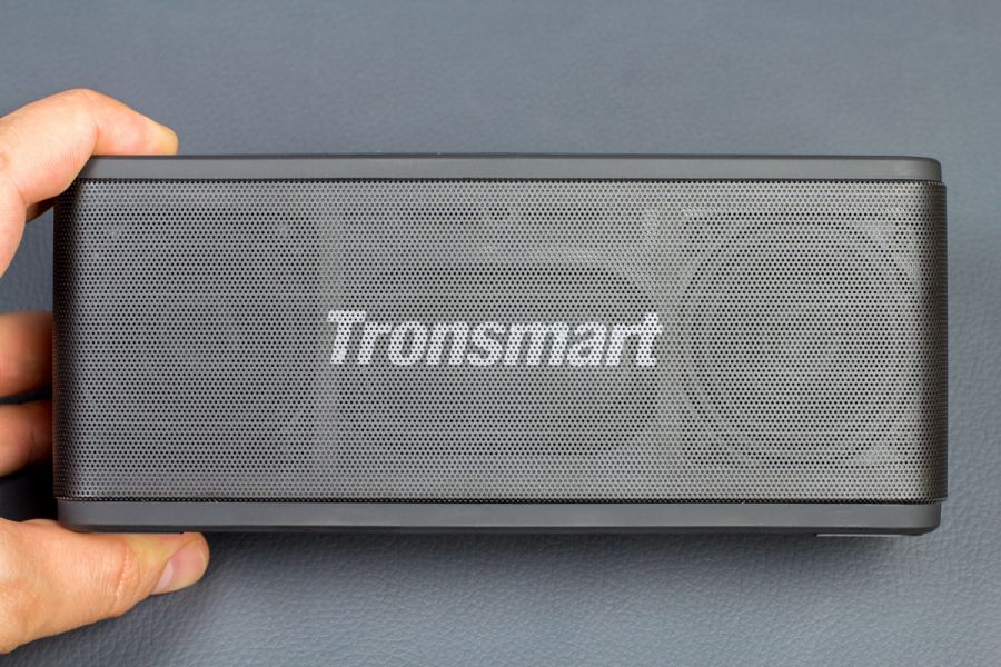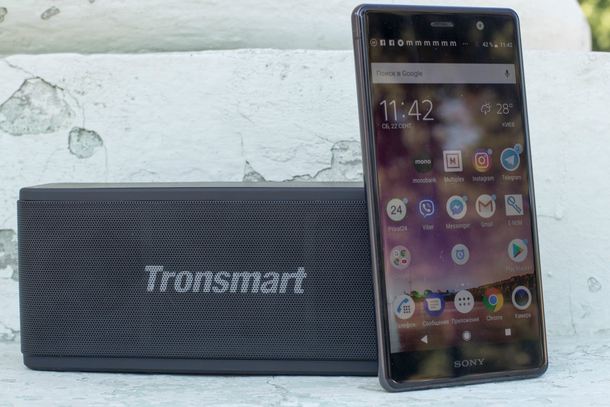 Обзор Tronsmart element Mega: басистая колонка с красивой, но сдержанной внешностью и ярким управлениемTronsmart element Mega – колонка, которая способна конкурировать с продуктами более известных брендов. Она доказала, что басов, чистоты звучания и максимальной громкости в ней достаточно для требовательного покупателя и ценника, который выставил на устройство производитель. Наши впечатления и подробности по части характеристик узнаете из обзора. Дизайн и корпус Модель element Mega выглядит скромно, но при этом ощущается, что материалы подобраны грамотно. Сетка – металлическая, остальное – прочный и софт-тач пластик черного цвета. Корпус защищен от падений и ударов, хотя внешность этого никак не выдает. А вот защиты от попадания влаги нет. Габариты колонки – 193 x 57 x 82 мм, вес – 662,3 г. Ручки на корпусе не предусмотрено, так что носить в руке гаджет не очень удобно. Плоские ножки из резины не дают колонке скользить по поверхности стола или другой плоскости. По форме мы получаем скругленный прямоугольник из металла и пластика. К подборке материалов не придраться. Звучание Заявленная производителем мощность Tronsmart element Mega - 40 Вт. Басов действительно много, но цифра явно завышена. Больше похоже на то, что это пиковое значение, а на деле 2*10Вт. Заявлено, что внутри 28-яденый сабвуфер. Технология DSP заполняет пространство вокруг гаджета объемным звуком. Если брать комнату на 20 квадратных метров, то ставить громкость выше 70% не рекомендуем. Даже этого значения достаточно, чтобы назвать звучание очень громким. А ведь можно еще больше, что очень пригодится на улице. Каждый драйвер - 53 мм, 4 Ом 20Вт. Частотные характеристики 115 Гц - 13 KГц. Басы сильные. На максимальном значении звука возможны искажения, особенно для треков низкого качества. Что интересно, встроена функция TWS (True Wireless Stereo). Подключаете две колонки к одному источнику и получаете полноценный стереоэффект. Управление На тыльной панели выделено место под элементы управления и подключения источников музыкальных данных: microUSB для зарядки, слот под microSD карту, переключатель ON/OFF, AUX вход. Синхронизация по Bluetooth и NFC реализована. Возможно только полноценного USB не хватает. Для переключения между источниками звука достаточно нажать кнопку Mode на верхней панели. При зарядке Mode подсвечивается красным. Панель сенсорная, покрыта приятным для касания софт-тач пластиком. С умом выполнена подсветка. В темного выглядит красиво, можете сами убедиться на фотографии ниже. Диоды светится всегда, когда колонка включена. Для регулировки громкости используется скролл полоска. Ведете по ней пальцем и выбираете необходимый уровень звука. Работает механизм без нареканий. Еще парочка сенсорных кнопок с соответствующими обозначениями позволяют переключать треки, ставить паузу. В процессе синхронизации ярлык «Play» подсвечивается голубым. Подключение по беспроводному каналу Bluetooth 4.2 обеспечивает удаленное управление на расстоянии до 10 метров. Изначально нужно связать колонку и смартфон/планшет. Куда проще запустить проигрывание через NFC – нужно просто поднести гаджет к колонке. Автономность Емкость встроенного в колонку аккумулятора – 3300 мАч. На 30% громкости заряда хватило на 10 часов непрерывного звучания (источник музыки – карта памяти). На громкости 50% и Bluetooth соединение 100% батареи будет достаточно на 5 часов. Если повысить громкость 